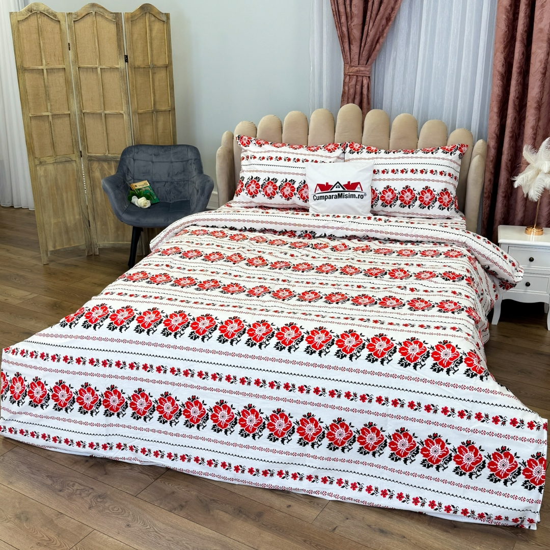 Lenjerie de pat dublu din bumbac ranforce - 4 piese, croita cu grija in atelierul Cumparamisim Transforma-ti dormitorul intr-un sanctuar al confortului si elegantei cu aceasta lenjerie de pat din bumbac ranforce, realizata manual in atelierul nostru. Fiecare set este creat cu o atentie desavarsita la detalii, asigurand un produs premium, adaptat nevoilor tale. Descriere detaliata a produsuluiMaterial: Bumbac ranforce de inalta calitate. Bumbacul ranforce este o tesatura de inalta calit