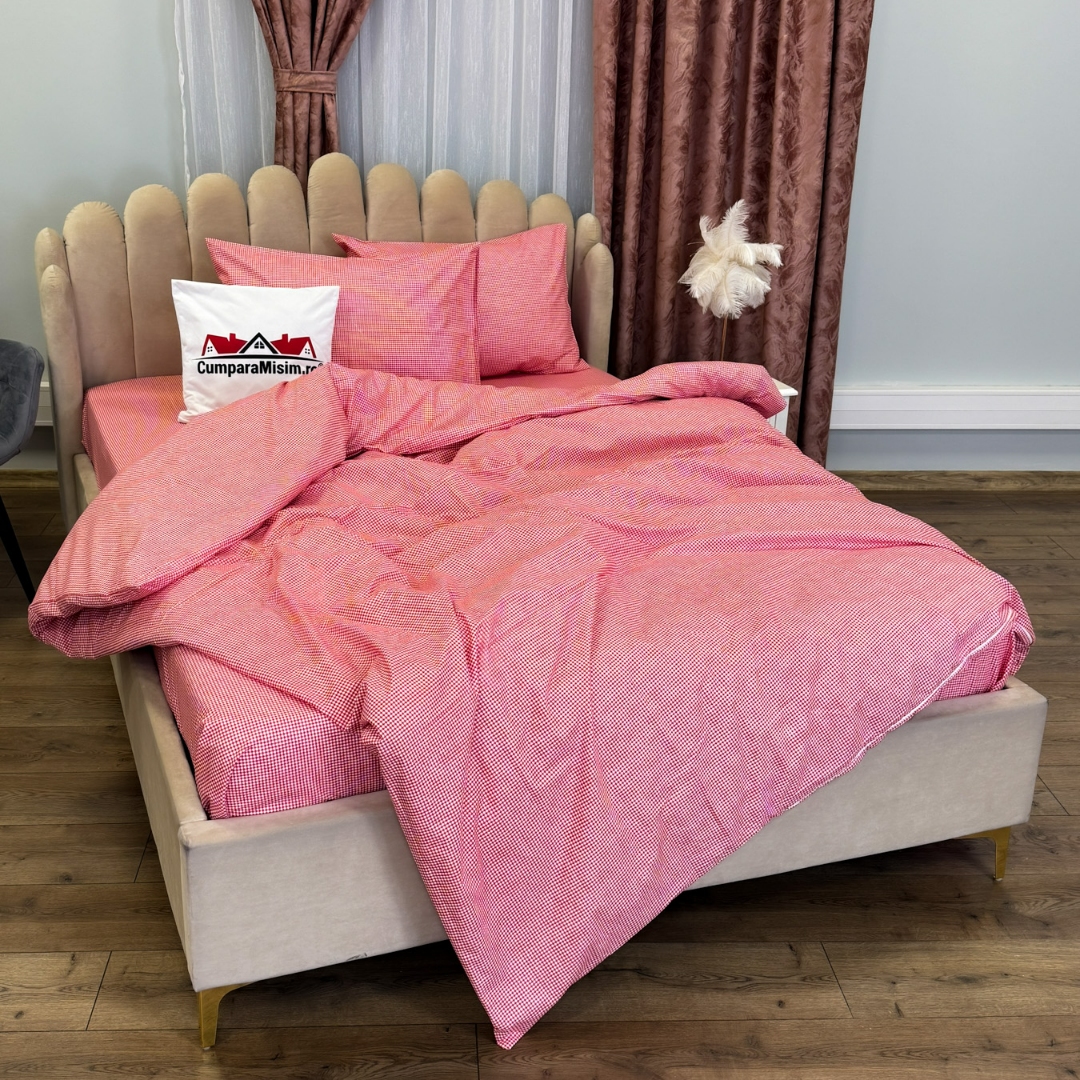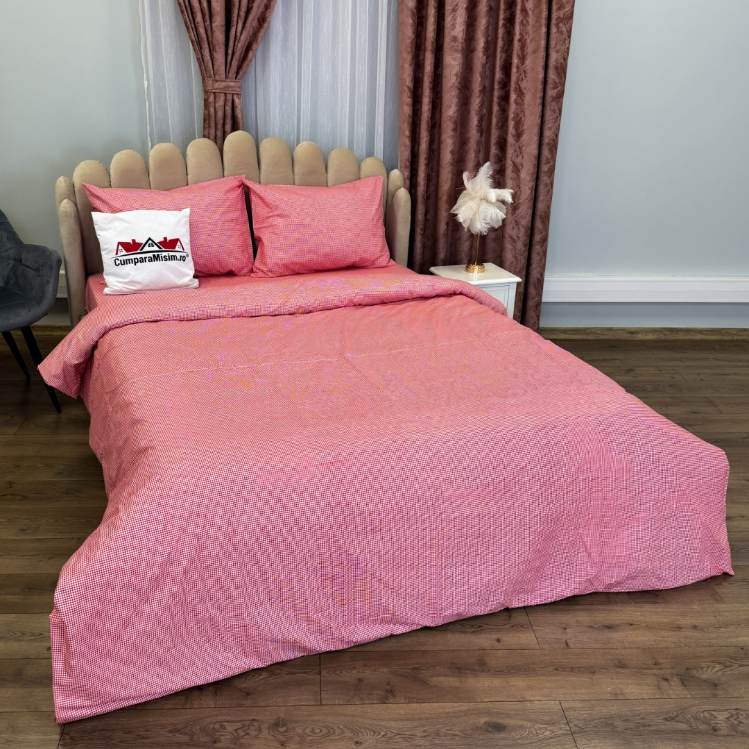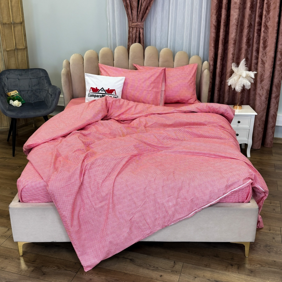 Lenjerie Pat Dublu, Bumbac Ranforce, 4 piese, Atelier Cumparamisim - Lux Suprem, Rafinament Desavarsit, Confort Regal,Roz, patratele