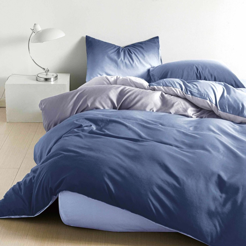 (OFERTA 3 la 219 Lei) Lenjerie pat dublu cu Elastic (160x200cm si 180x200cm), bumbac satinat, Albastru, degrade