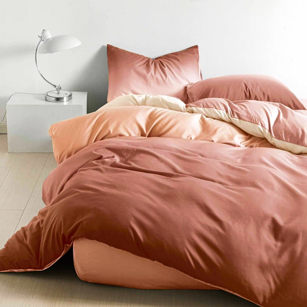 (OFERTA 3 la 219 Lei) Lenjerie pat dublu cu Elastic (160x200cm si 180x200cm), bumbac satinat, Caramiziu, degrade