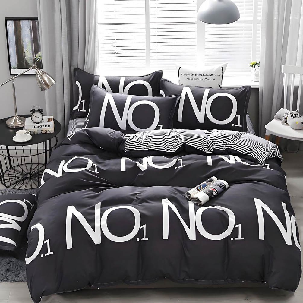 (OFERTA 3 la 199 Lei) Lenjerie pat dublu cu doua feţe, bumbac satinat, 4 piese, Gri, No.1
