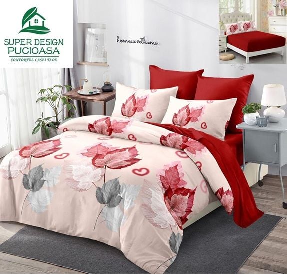 Lenjerie pat dublu finet 6 piese , cearceaf cu elastic Pucioasa Engros