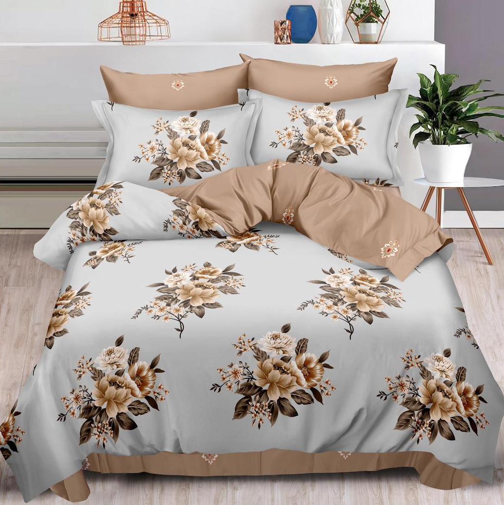 Lenjerie pat dublu cu ELASTIC, Finet, 6 piese, Maro, flori