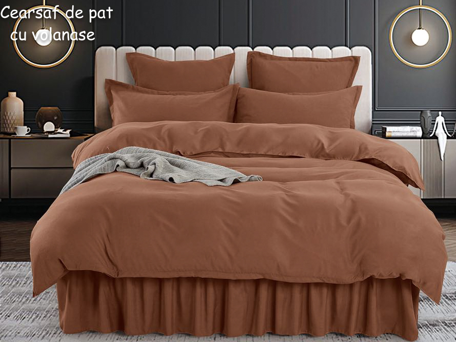 Lenjerie pat dublu, FINET, 6 piese, cu volanase, Jojo Home, Maro