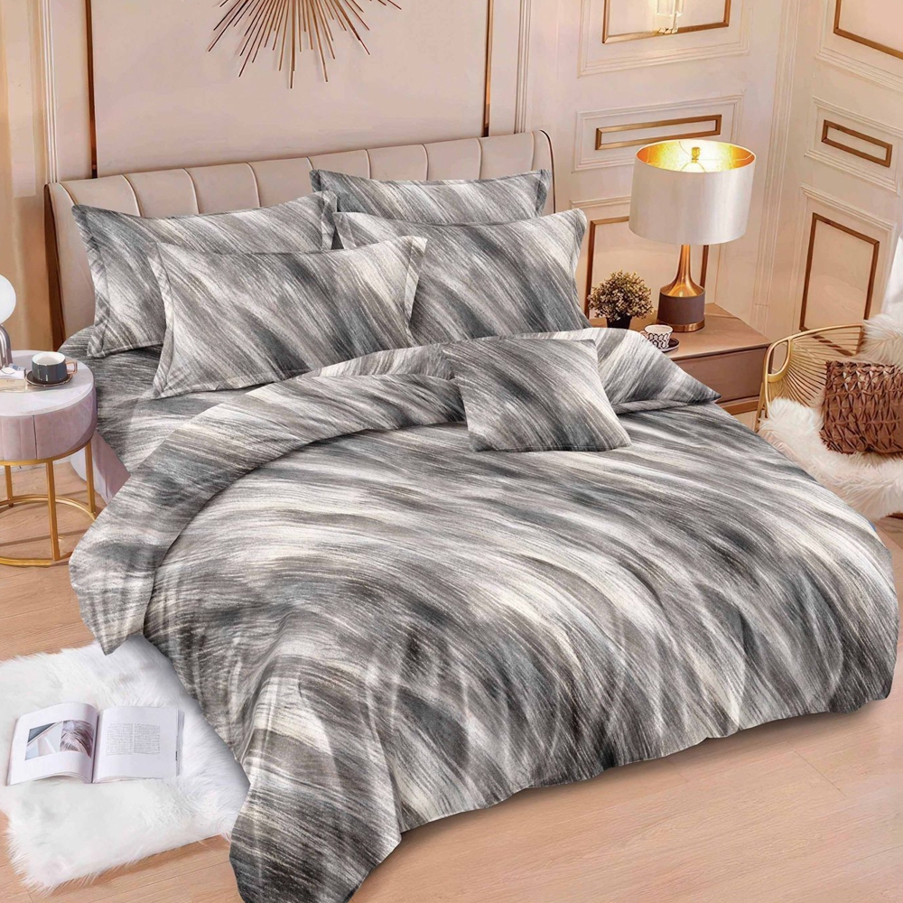 Lenjerie pat dublu, Finet, 6 piese, Gri, Bej, abstract
