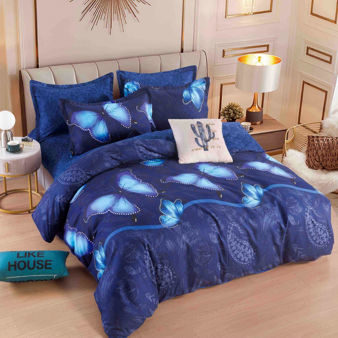 Lenjerie pat dublu, FINET, 6 piese, Jojo Home, Albastru, fluturi