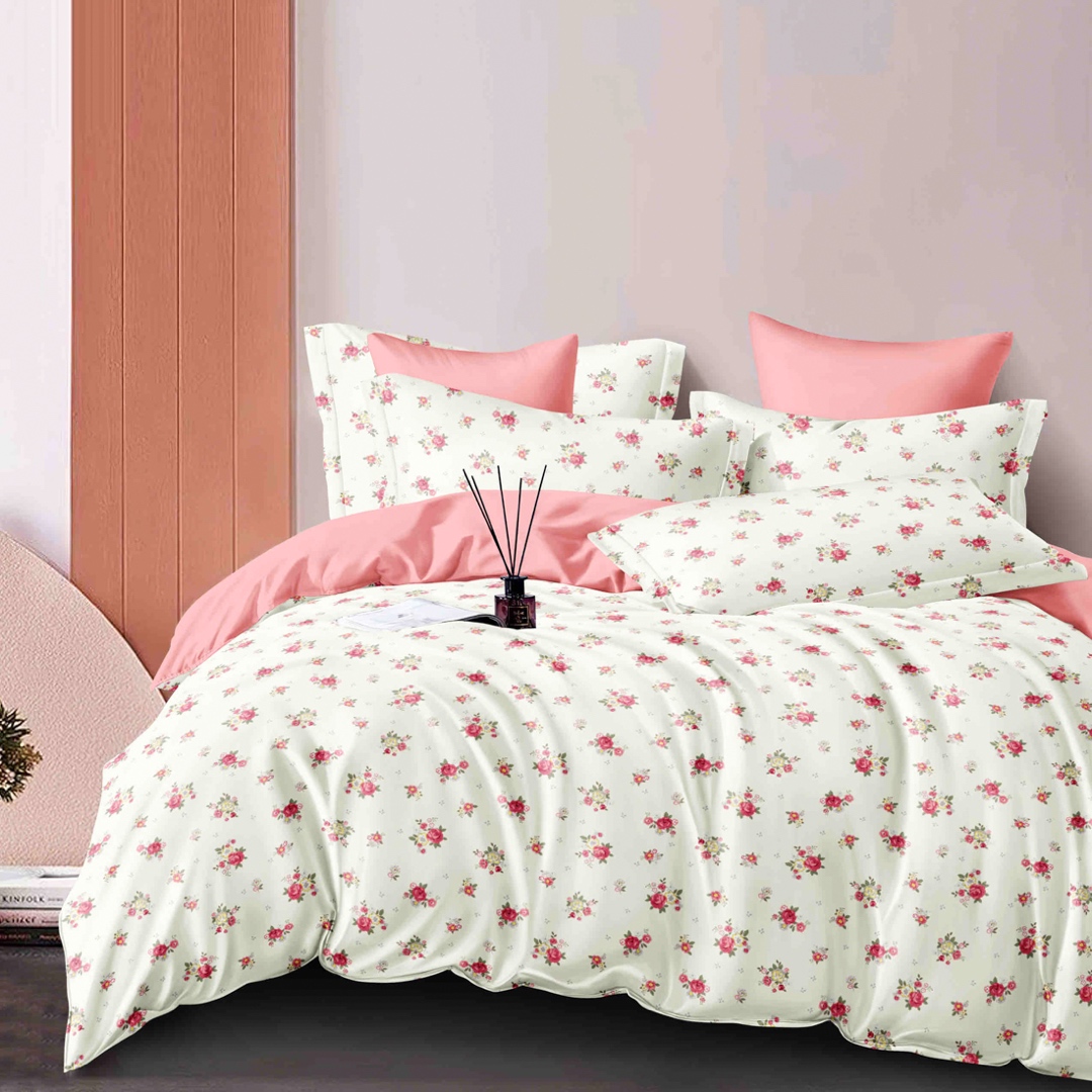 Lenjerie pat dublu, FINET, 6 piese, Jojo Home, Crem, Roz, Floricele