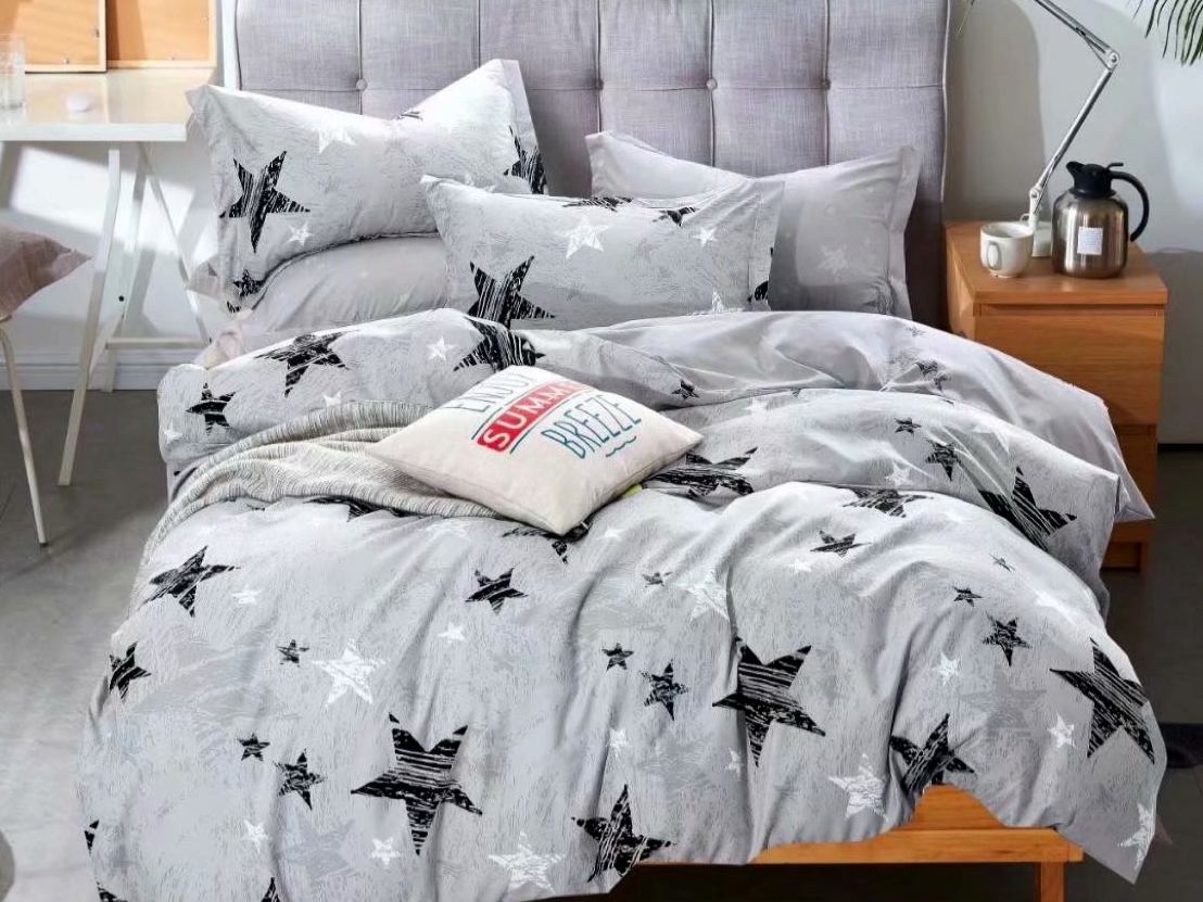 Lenjerie pat dublu, FINET, 6 piese, Jojo Home, Gri, stelute