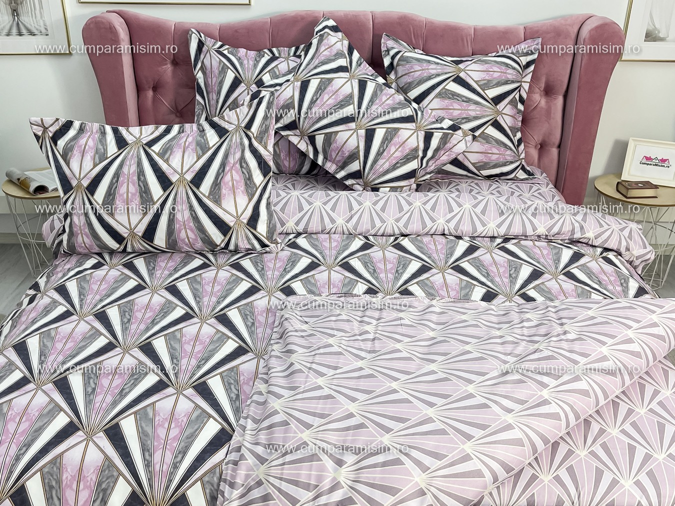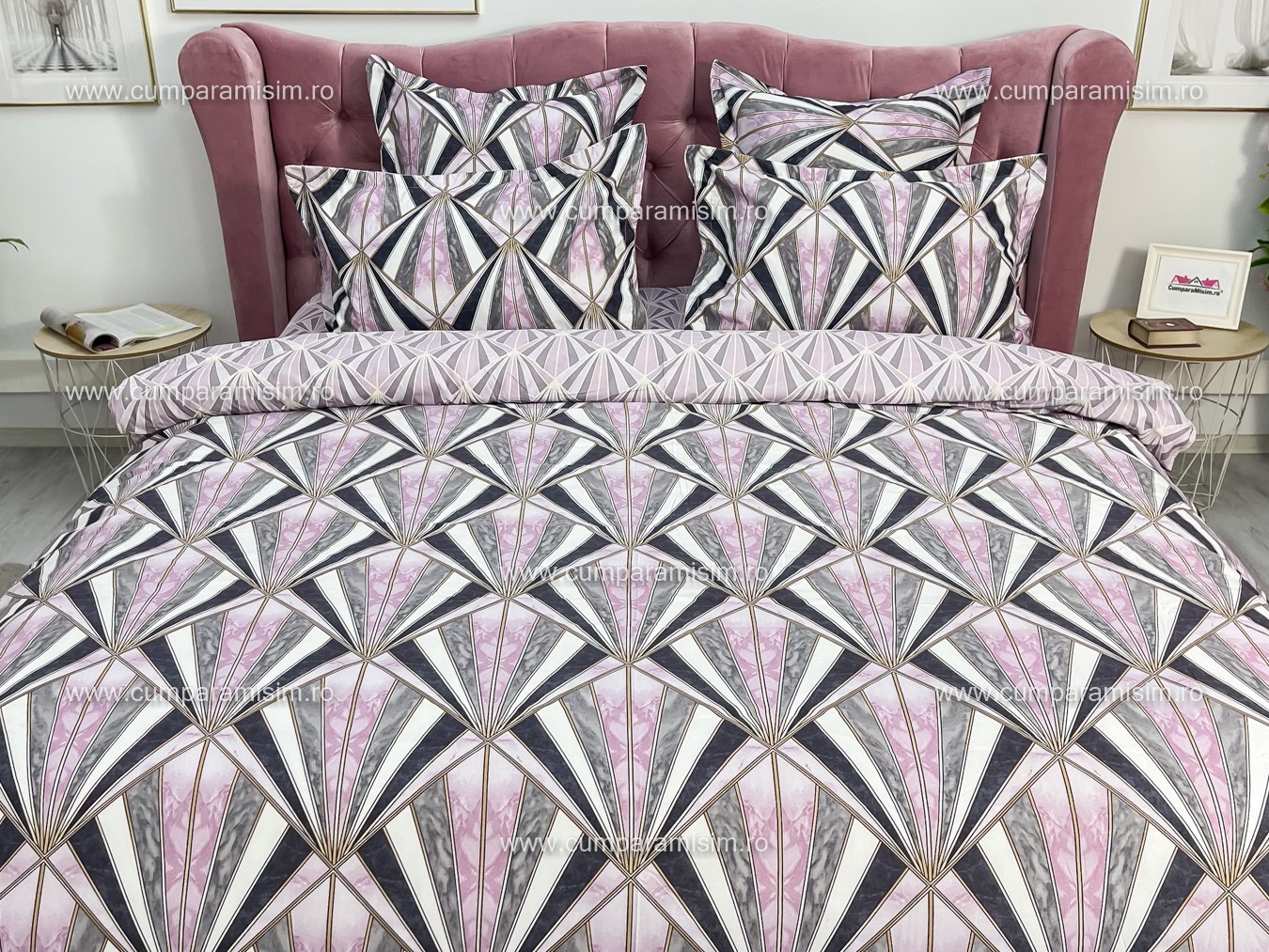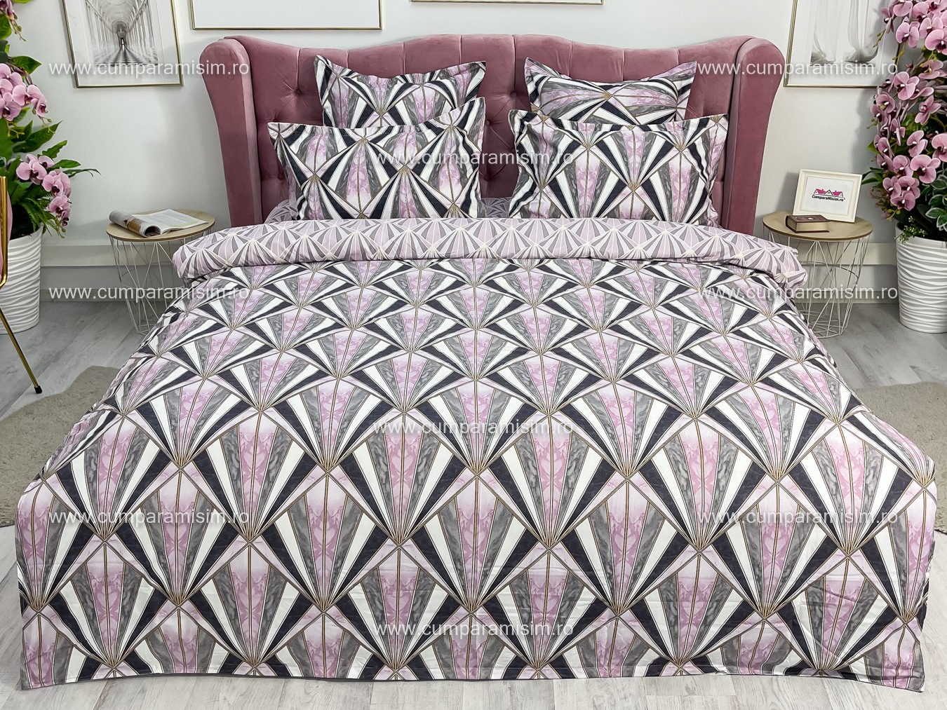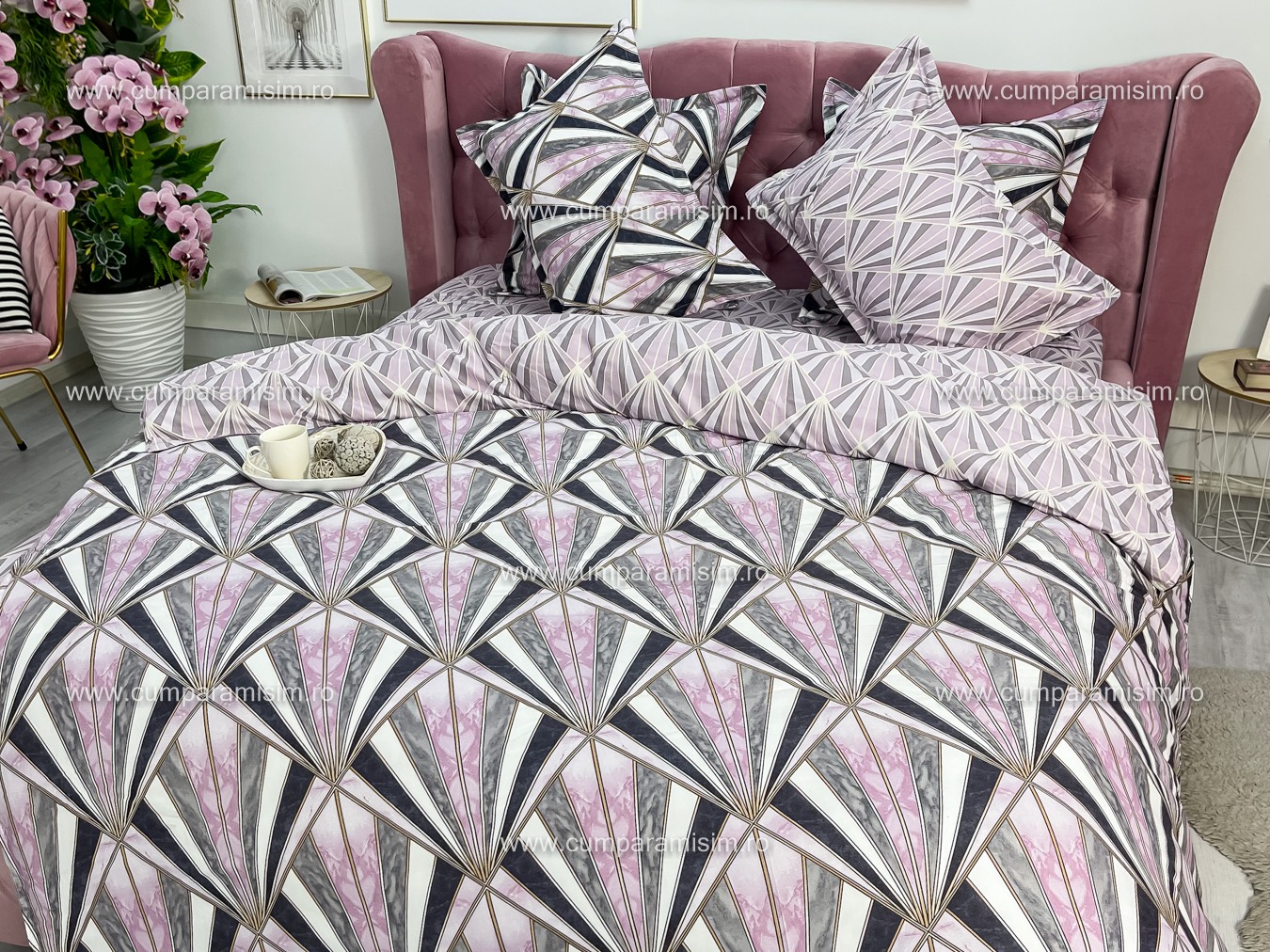 Lenjerie de Pat Dublu 6 Piese – 100% Bumbac Finet Premium     Transforma-ti dormitorul intr-un spatiu de relaxare cu stil. Aceasta lenjerie de pat dublu, realizata din bumbac 100% Finet, imbina eleganta designului cu practicitatea materialului, fiind alegerea ideala pentru cei care cauta confort, durabilitate si intretinere usoara.   De ce sa alegi bumbacul Finet? Material preferat de clienti datorita rezistentei si aspectului impecabil in timpImprimeuri moderne realizate prin cea mai