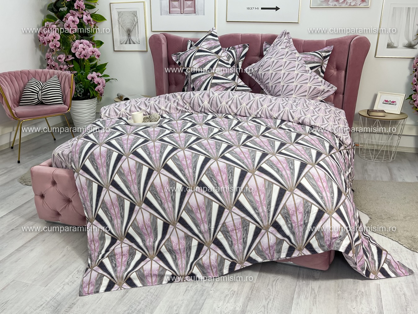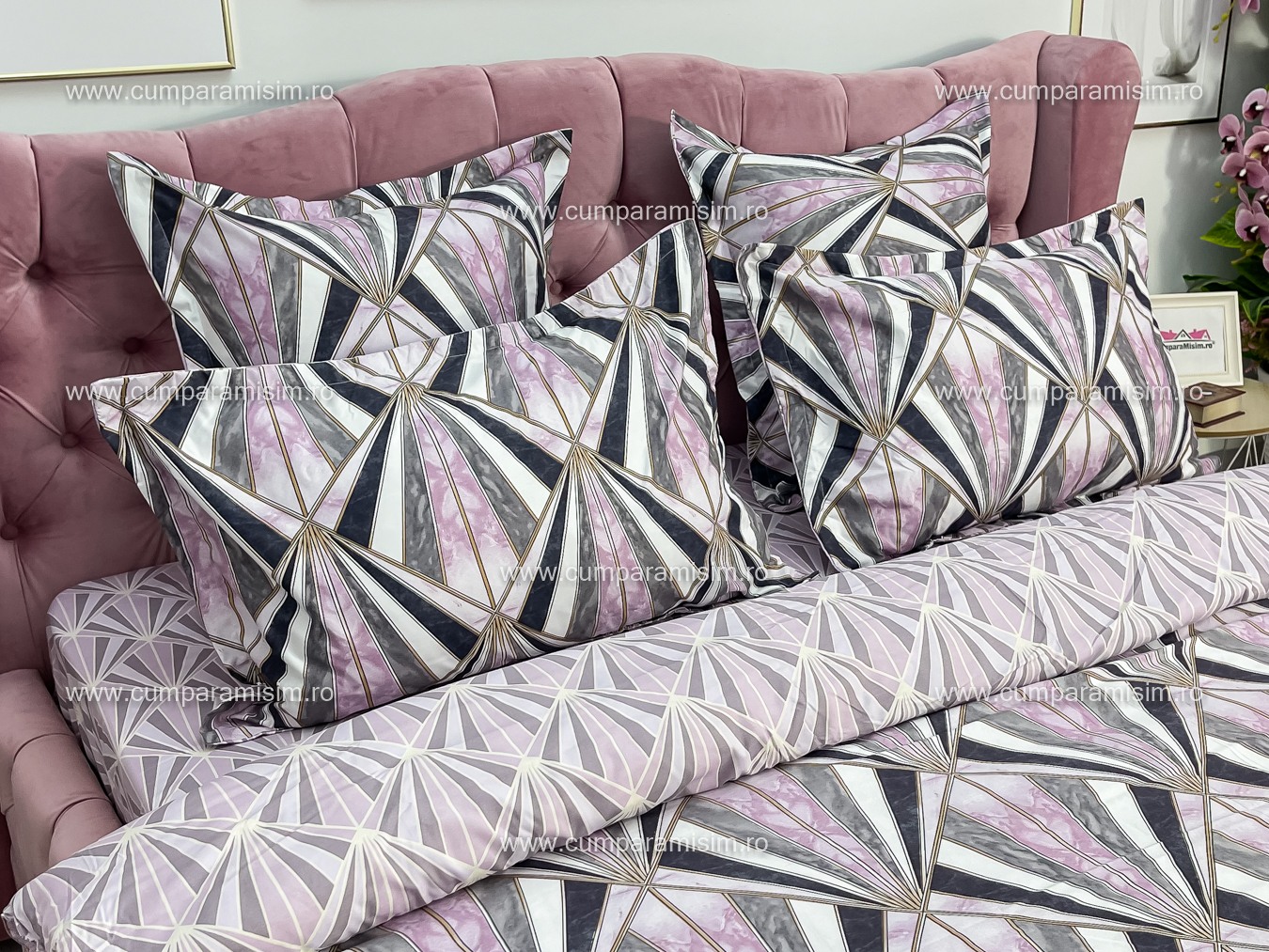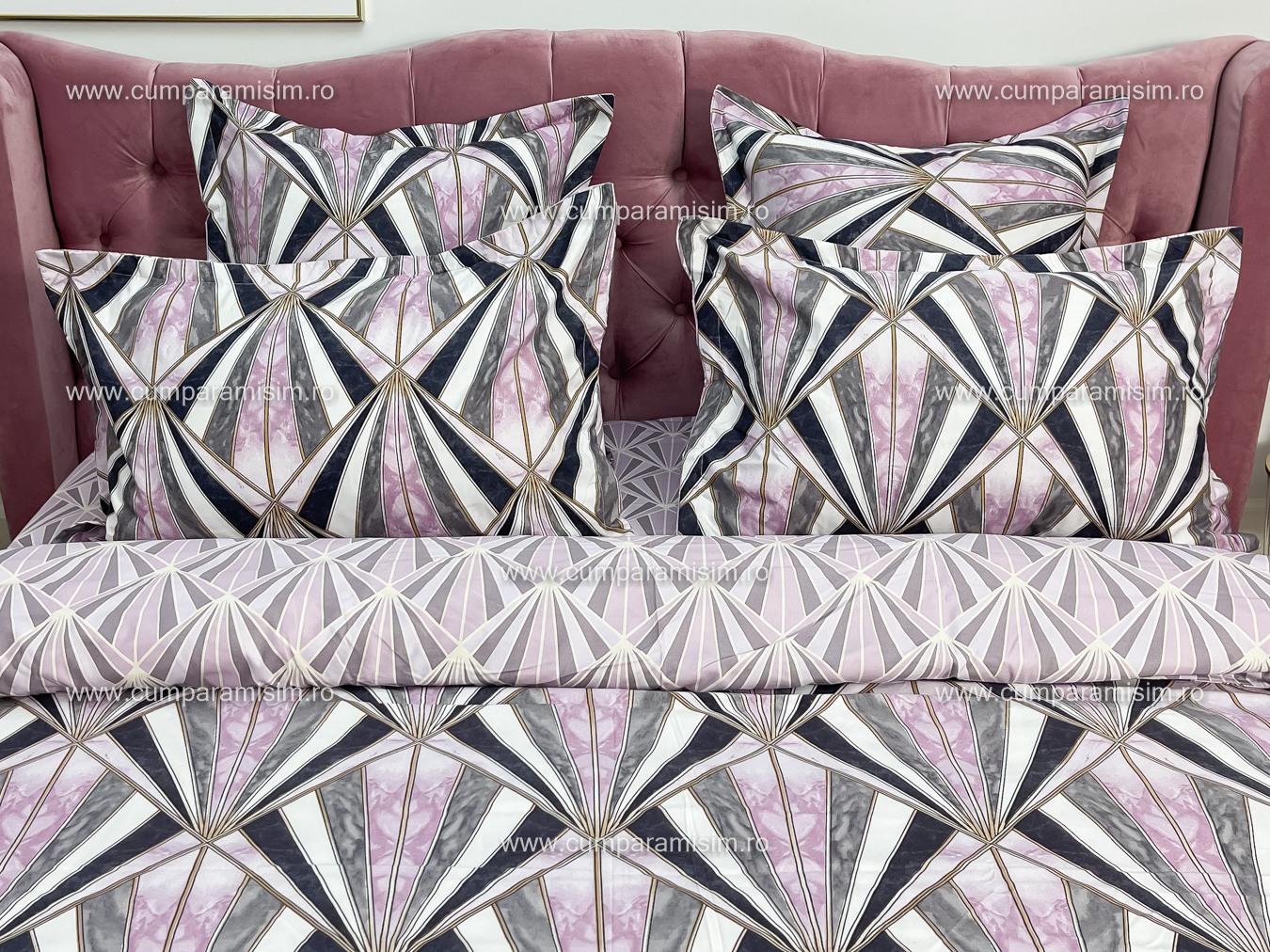 Lenjerie pat dublu, FINET, 6 piese, Jojo Home, Lila-Multicolor, model elegant