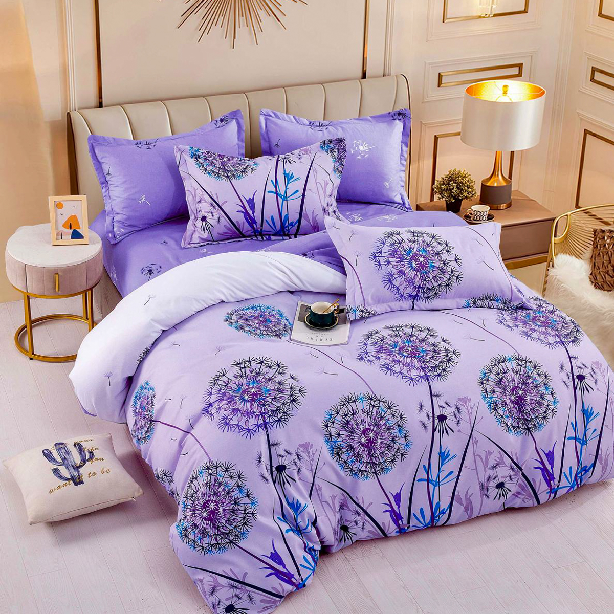 Lenjerie pat dublu, FINET, 6 piese, Jojo Home, Lila, papadii
