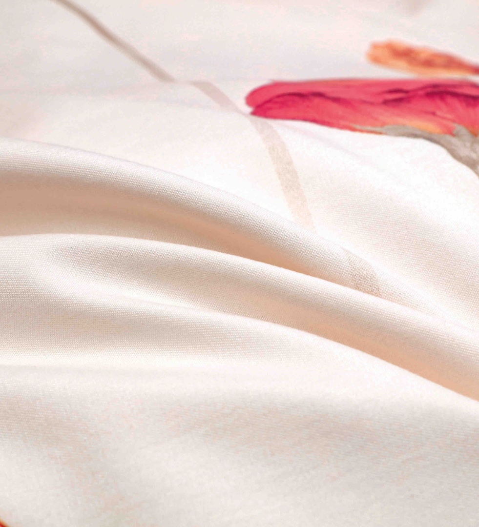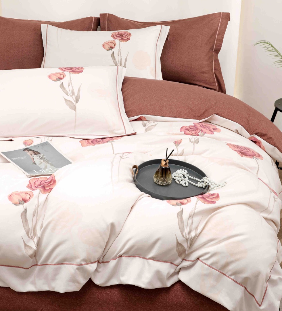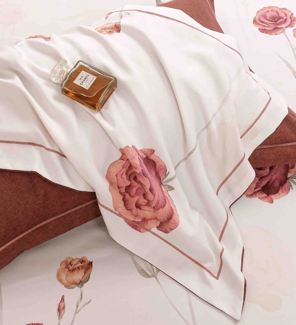 Lenjerie pat dublu, FINET DeLuxe, 6 piese, cu ELASTIC, Jojo Home, Cutie Eleganta, Roz, Maroniu, Flori