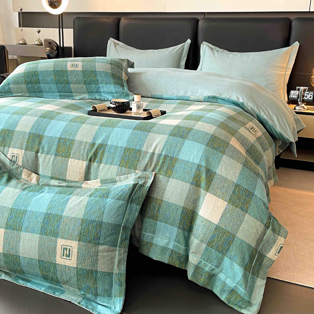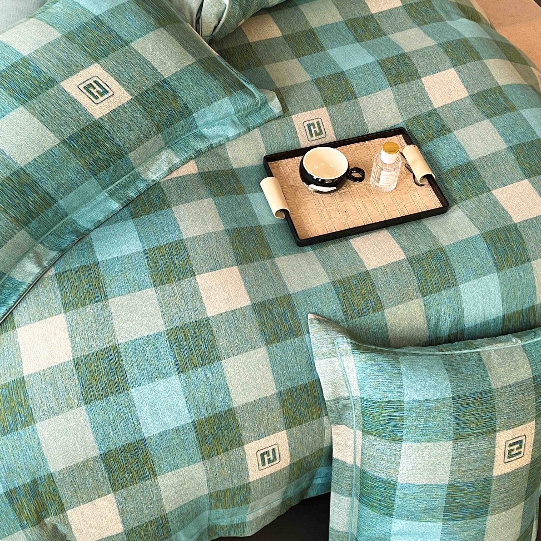 Lenjerie pat dublu, FINET DeLuxe, 6 piese, cu ELASTIC, Jojo Home, Cutie Eleganta, Verde, Bleu