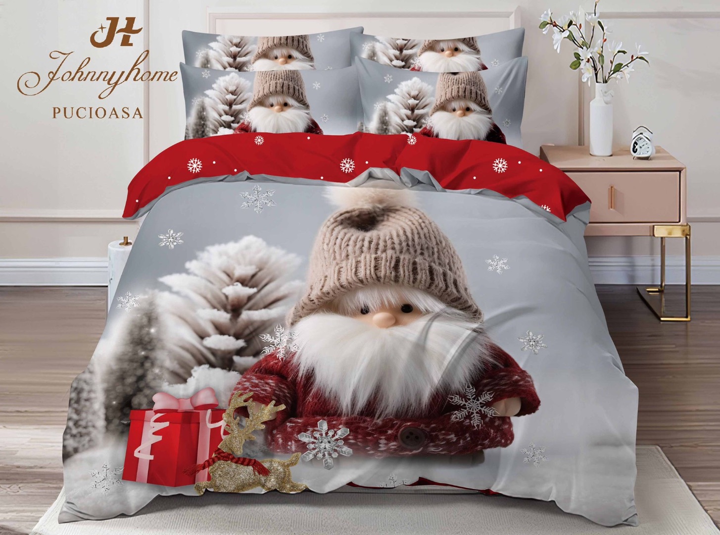 Lenjerie de pat Craciun din bumbac 100% finet - Confort si Eleganta Festiva Transforma-ti dormitorul intr-un colt de poveste de Craciun cu aceasta lenjerie de pat din bumbac 100% finet, imprimata cu motive festive exact asa cum sunt prezentate in poza de produs. Setul aduce nu doar un design spectaculos, ci si un confort maxim, datorita materialului de inalta calitate. Finetul este cunoscut pentru textura sa moale, neteda si placuta la atingere, oferind un somn odihnitor si o senzatie
