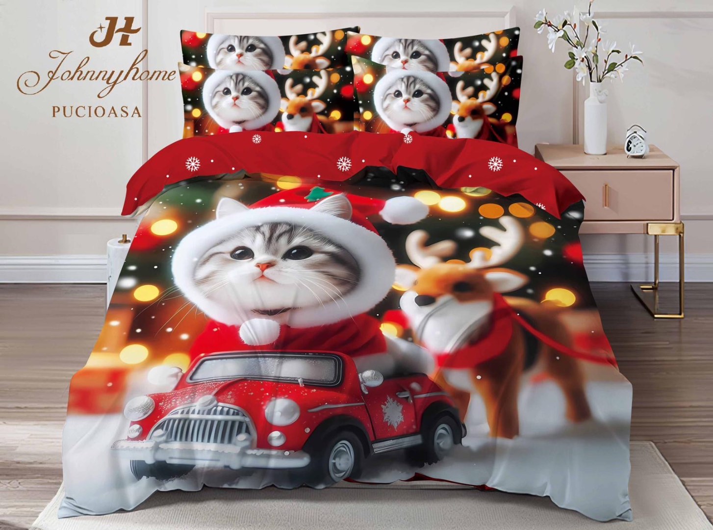 Lenjerie de pat Craciun din bumbac 100% finet - Confort si Eleganta Festiva Transforma-ti dormitorul intr-un colt de poveste de Craciun cu aceasta lenjerie de pat din bumbac 100% finet, imprimata cu motive festive exact asa cum sunt prezentate in poza de produs. Setul aduce nu doar un design spectaculos, ci si un confort maxim, datorita materialului de inalta calitate. Finetul este cunoscut pentru textura sa moale, neteda si placuta la atingere, oferind un somn odihnitor si o senzatie