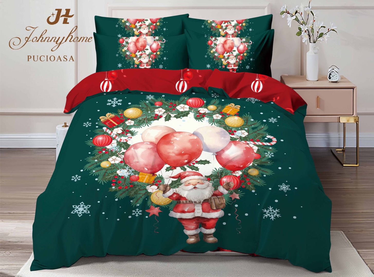 Lenjerie de pat Craciun din bumbac 100% finet - Confort si Eleganta Festiva Transforma-ti dormitorul intr-un colt de poveste de Craciun cu aceasta lenjerie de pat din bumbac 100% finet, imprimata cu motive festive exact asa cum sunt prezentate in poza de produs. Setul aduce nu doar un design spectaculos, ci si un confort maxim, datorita materialului de inalta calitate. Finetul este cunoscut pentru textura sa moale, neteda si placuta la atingere, oferind un somn odihnitor si o senzatie