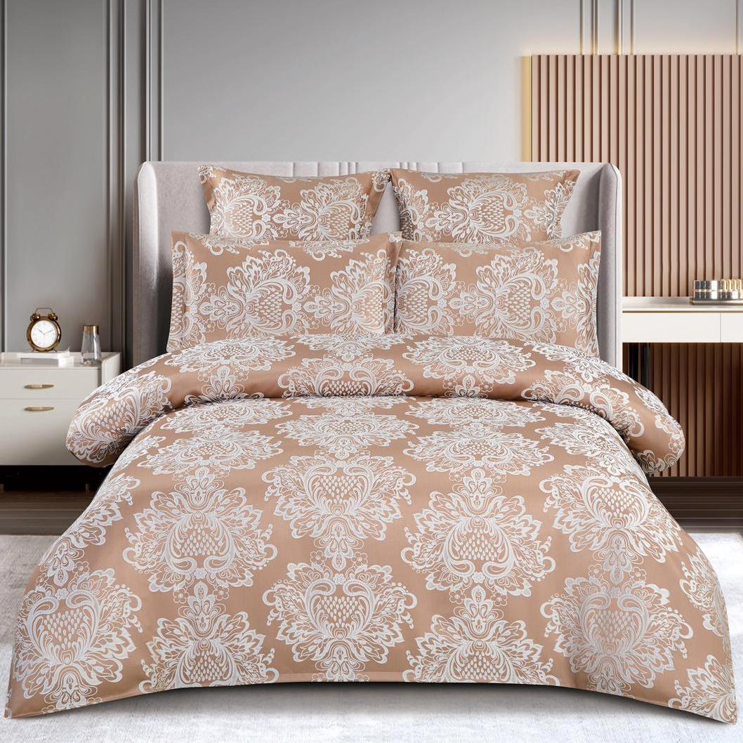 Lenjerie pat dublu, JACQUARD FINETAT, 6 piese, cu ELASTIC, Bej