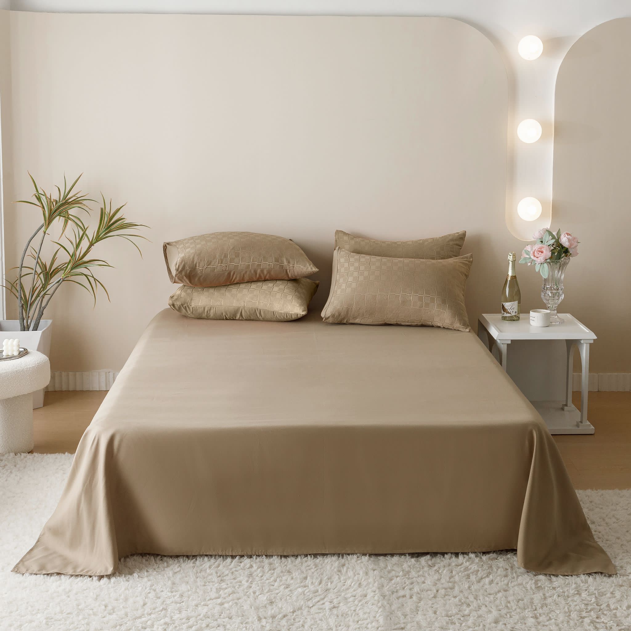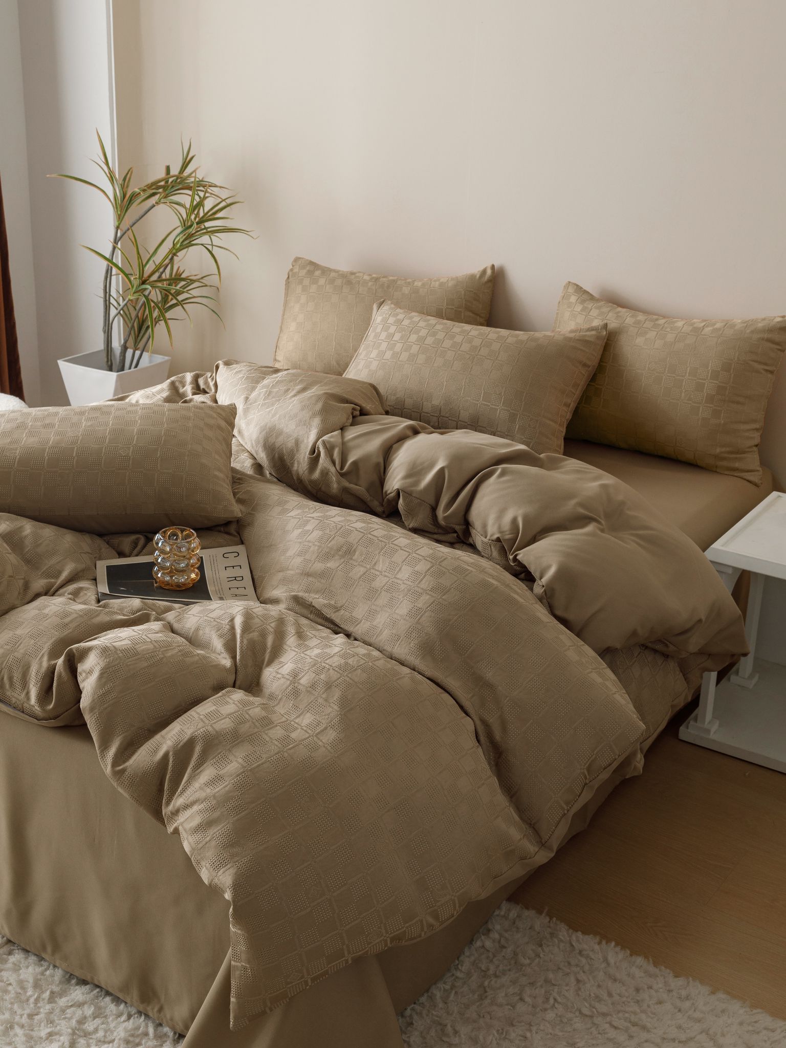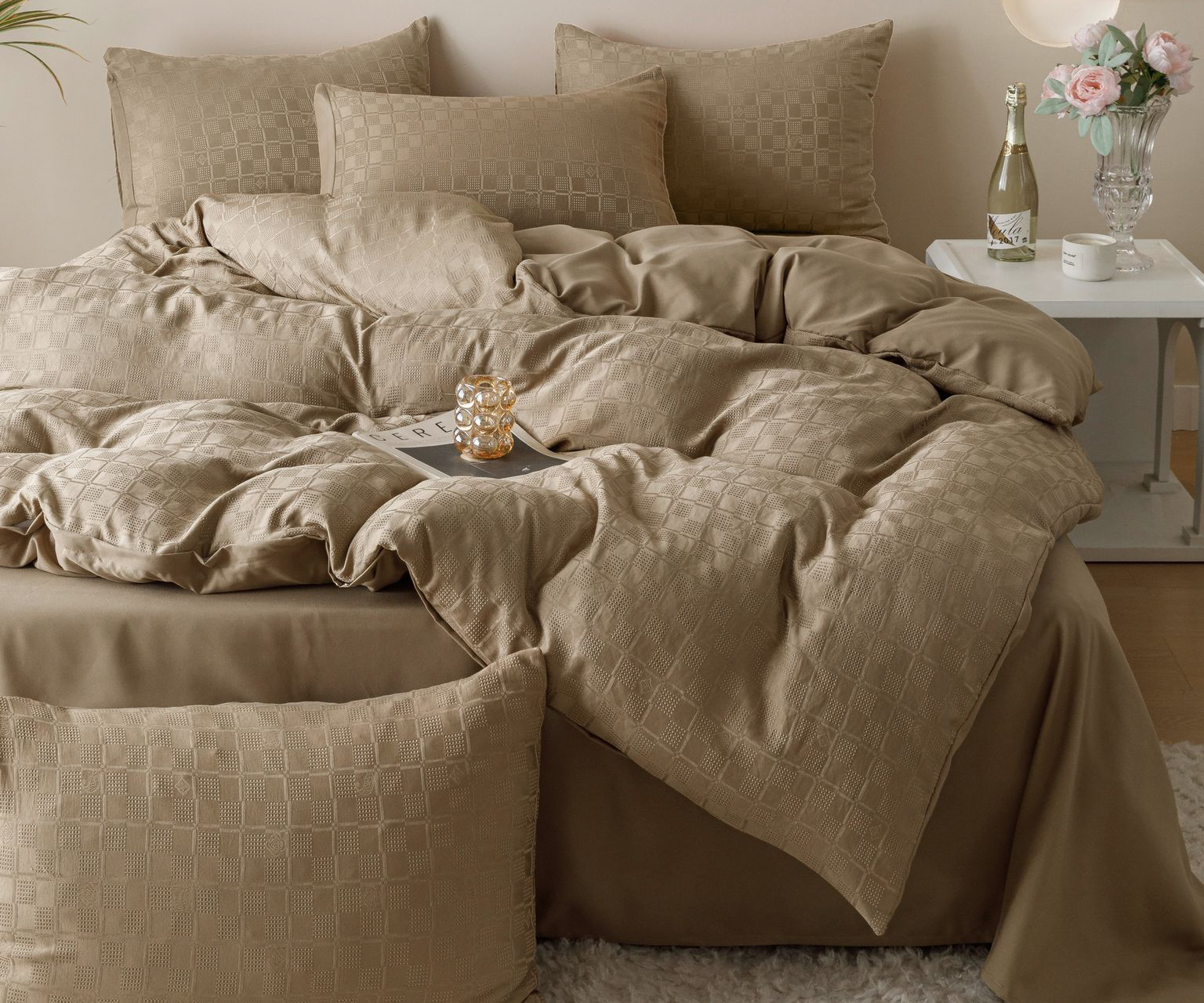 Lenjerie pat dublu, JACQUARD FINETAT, 6 piese, Jojo Home, Bej