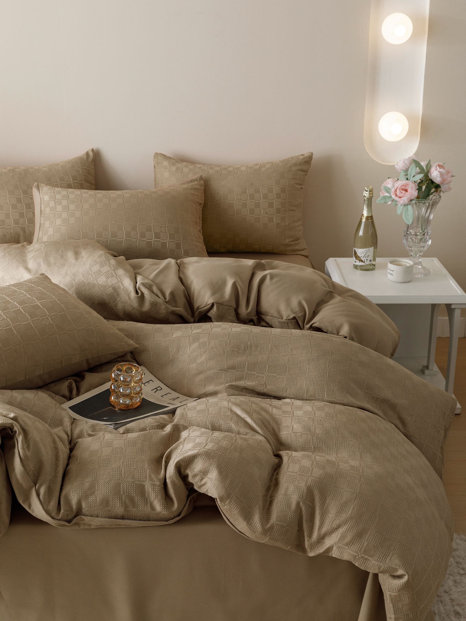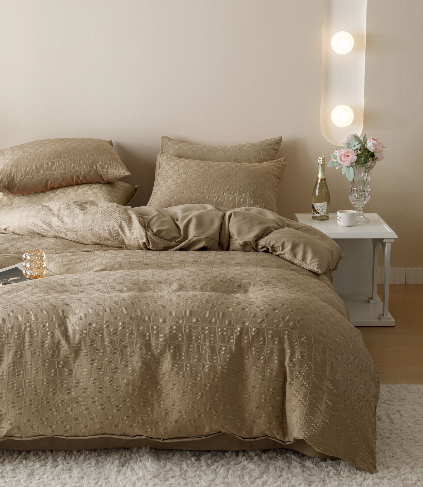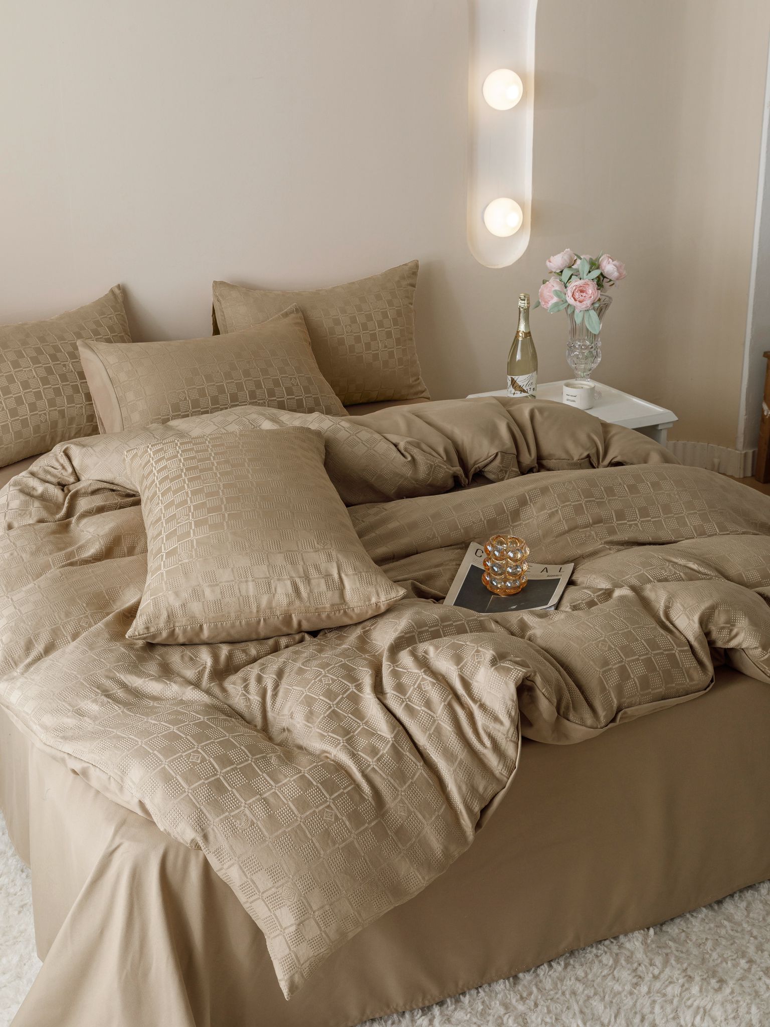 Lenjerie pat dublu, JACQUARD FINETAT, 6 piese, Jojo Home, Bej