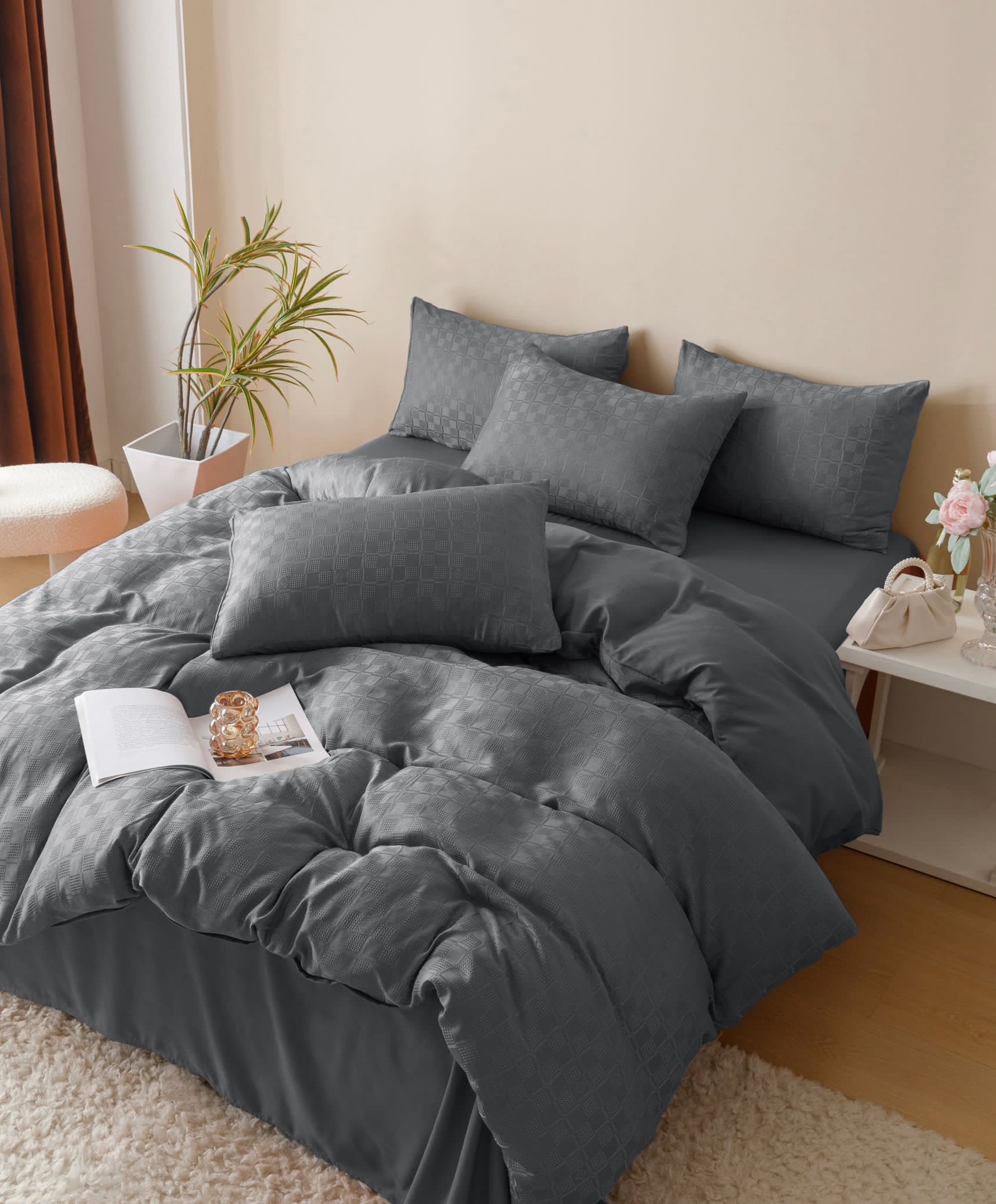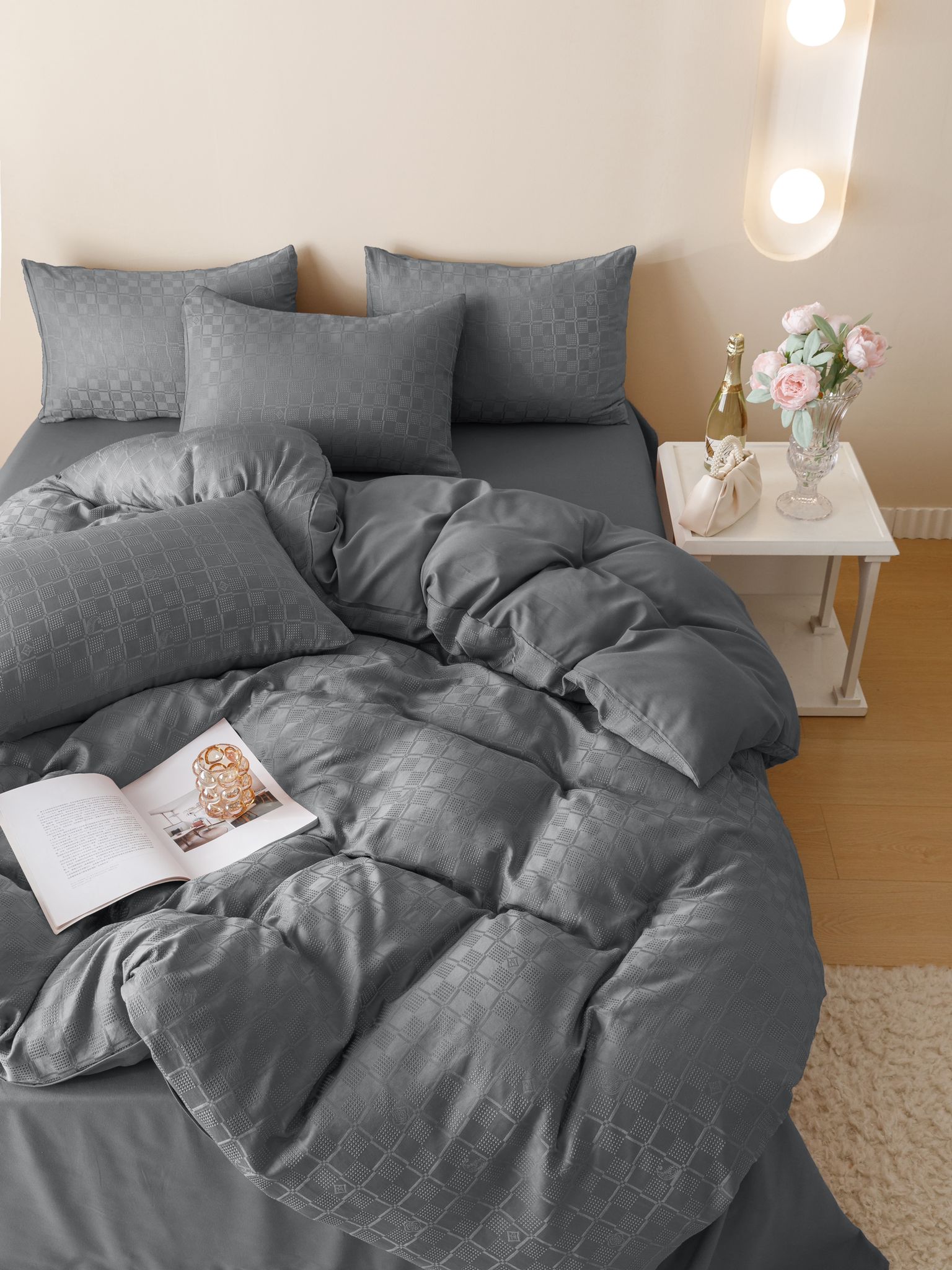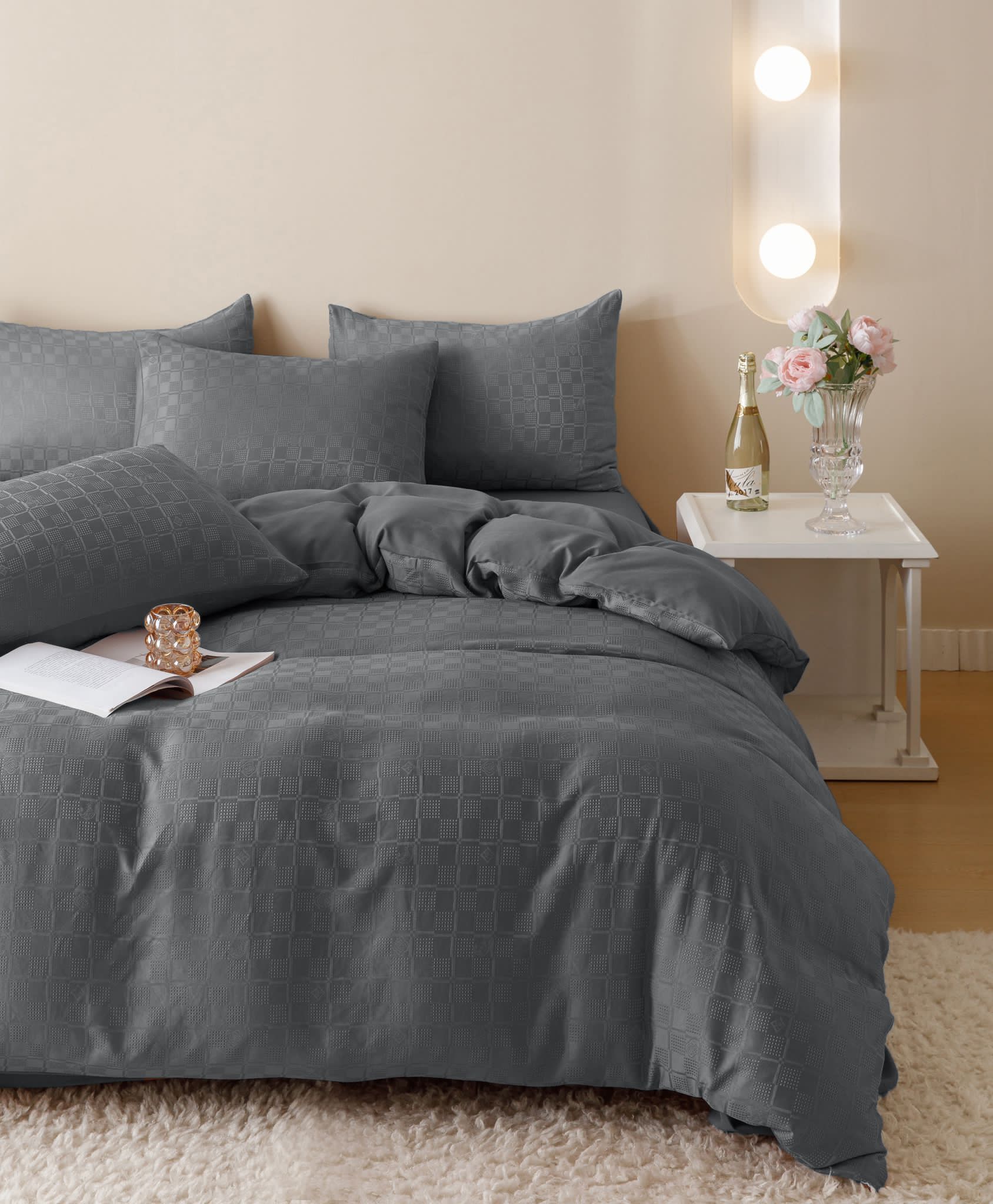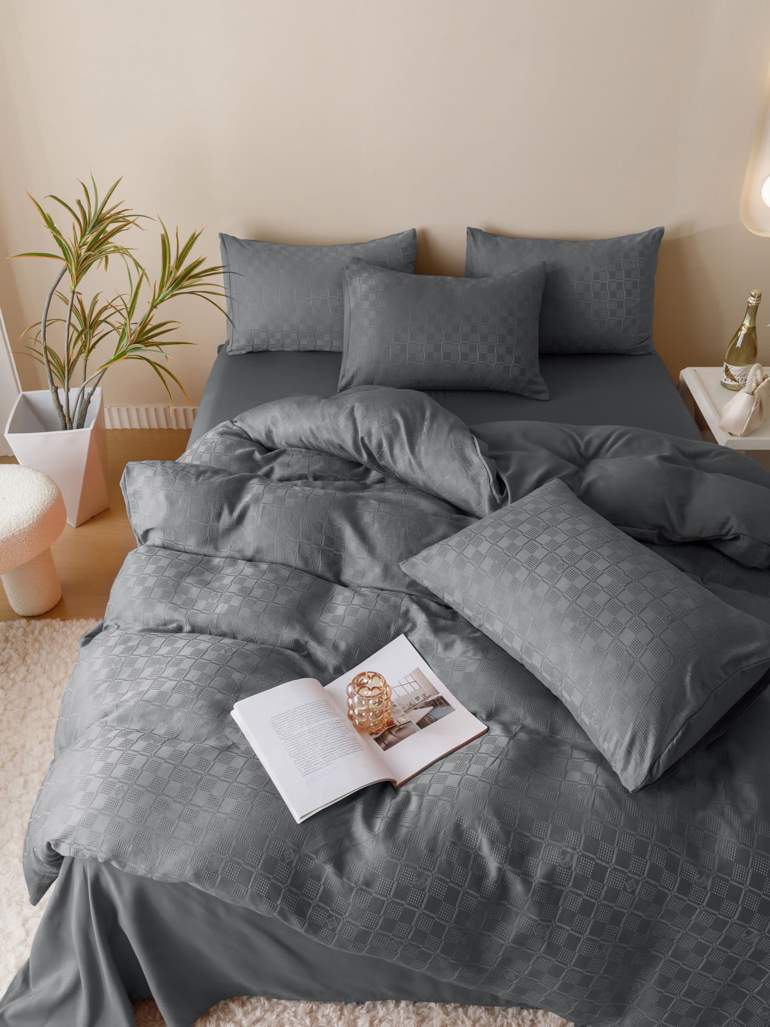 Lenjerie pat dublu, JACQUARD FINETAT, 6 piese, Jojo Home, Gri inchis