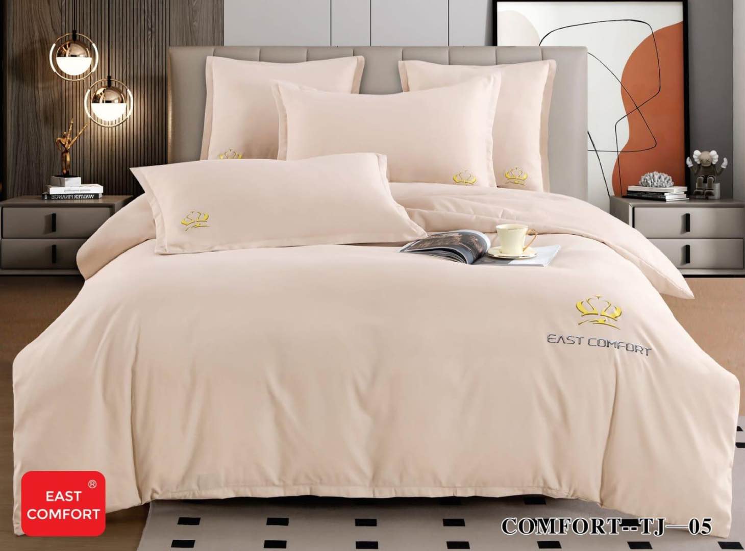 Lenjerie Pat Dublu 6 Piese din Bumbac Finet Horeca cu Logo Brodat - EAST COMFORT Descoperiti eleganta rafinata si calitatea deosebita oferite de acest set de lenjerie pentru pat dublu, special conceput pentru a oferi o experienta de somn premium. Acest set 6 piese este perfect pentru uz personal si pentru industria Horeca, garantand durabilitate si stil, disponibil doar la Cumparamisim.ro. Designul sofisticat si materialele de inalta calitate sunt completate de logo-ul EAST COMFORT bro