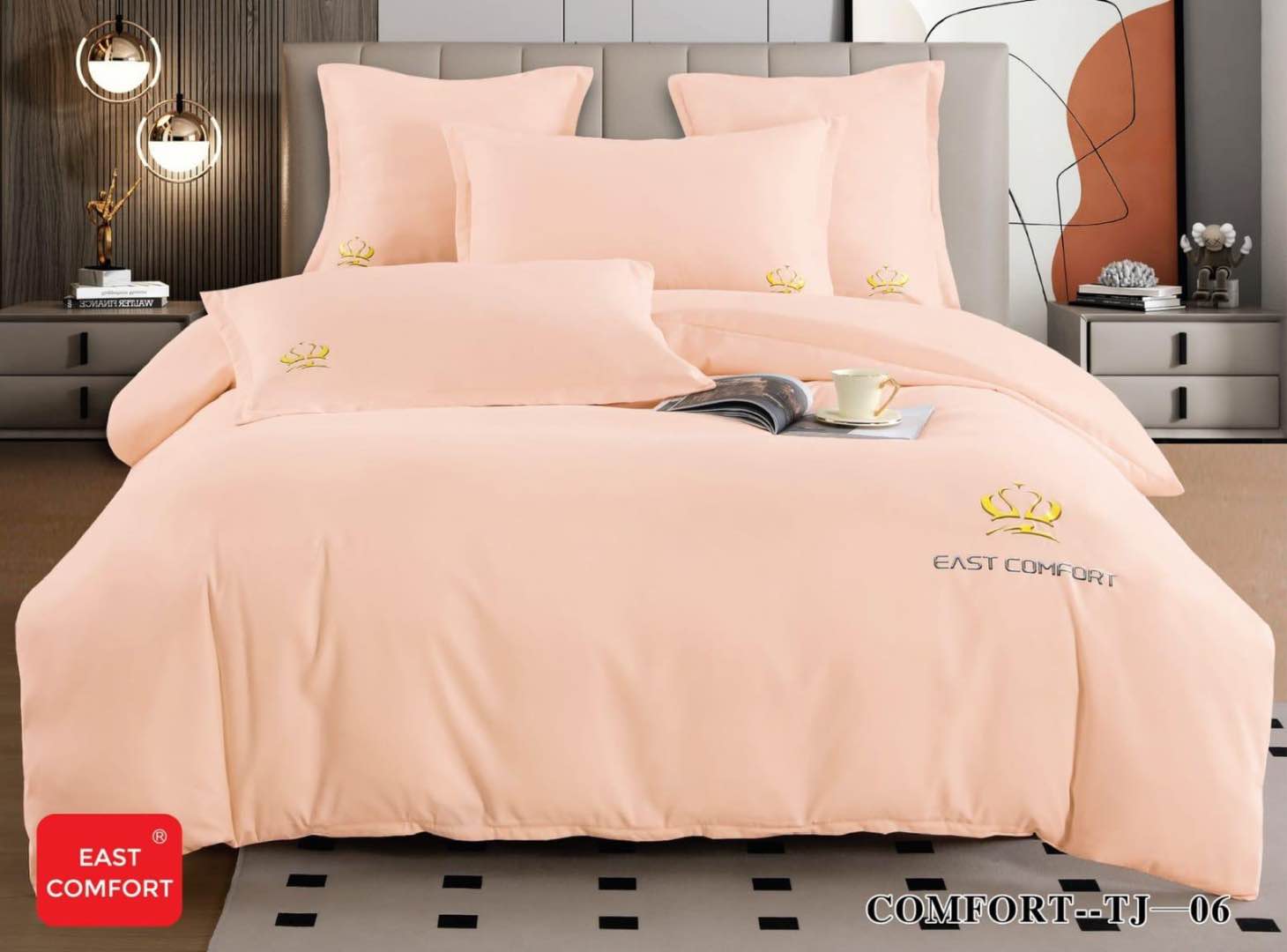 Lenjerie Pat Dublu Premium HoReCa 6 Piese, Finet cu Logo Brodat EAST COMFORT - Confort si Eleganta pentru Hoteluri si Pensiuni, Somon