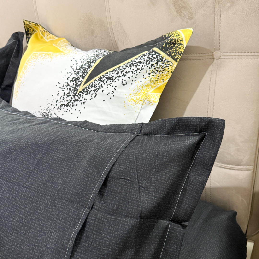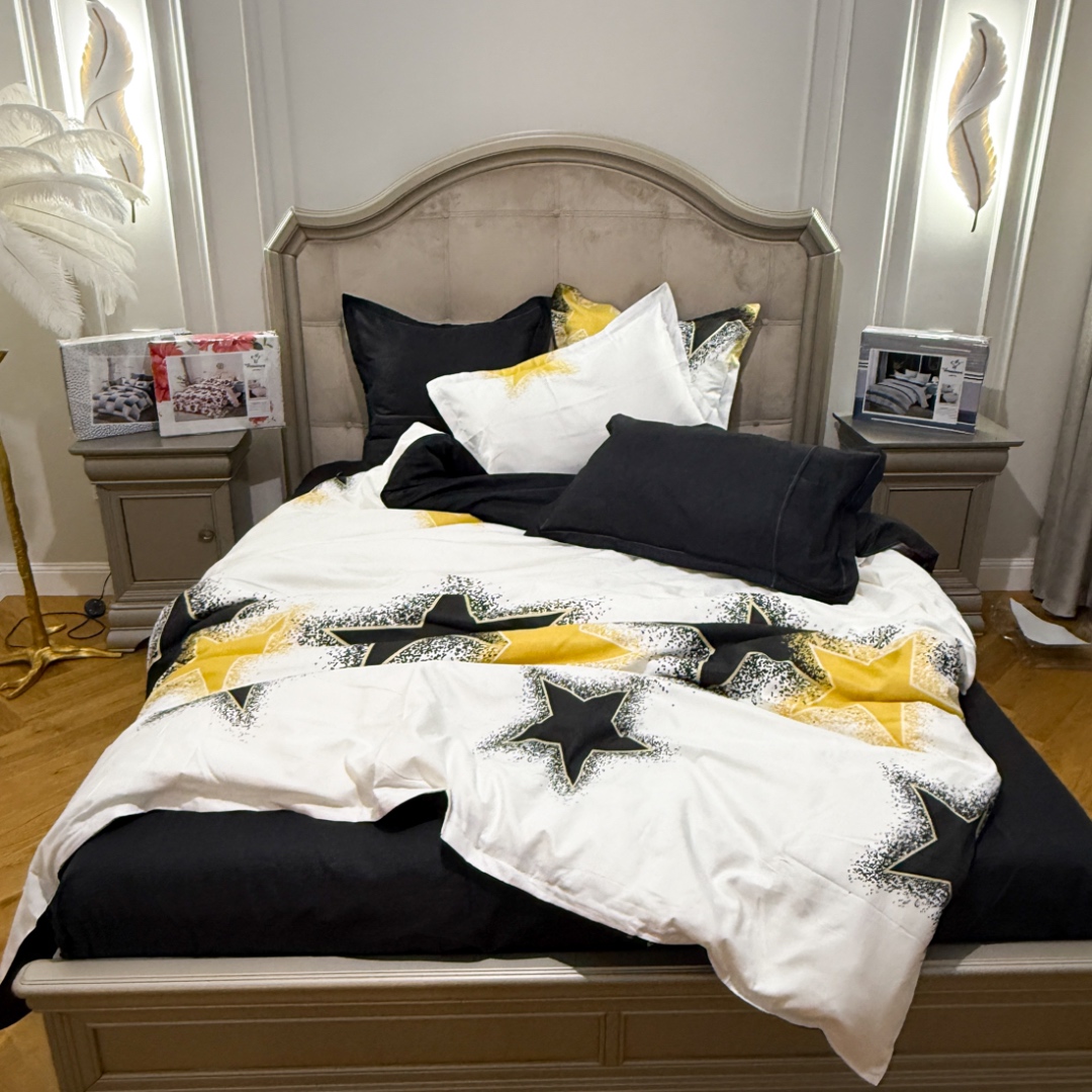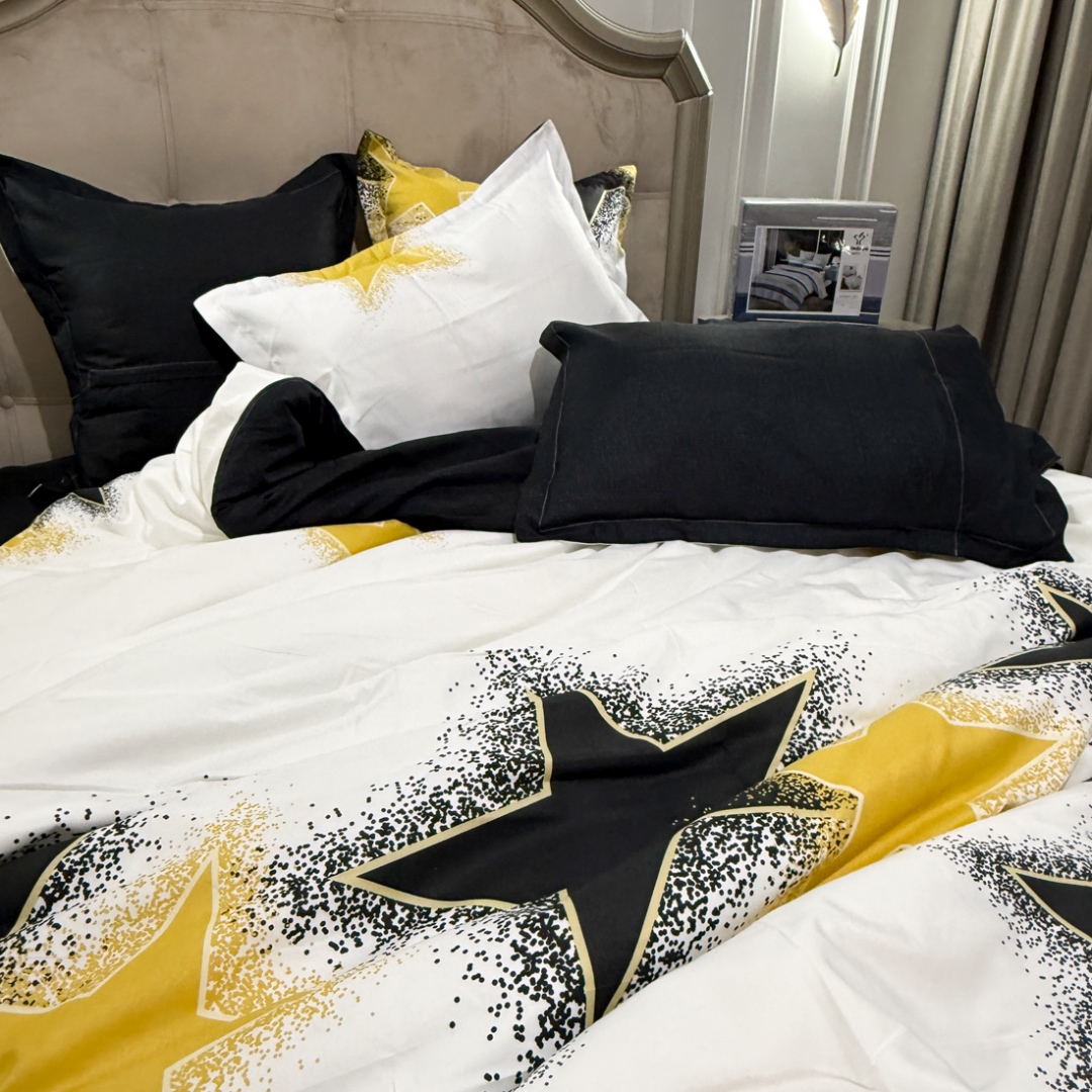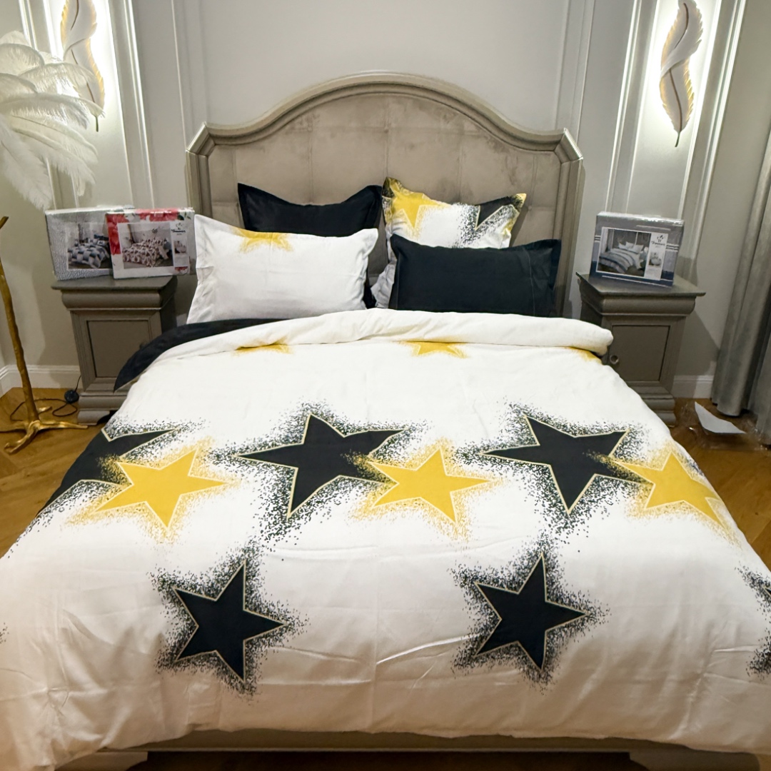 (OFERTA TRIO) Lenjerie Pat Dublu, FINET, 6 piese, Alb, Galben, Negru, Stelute