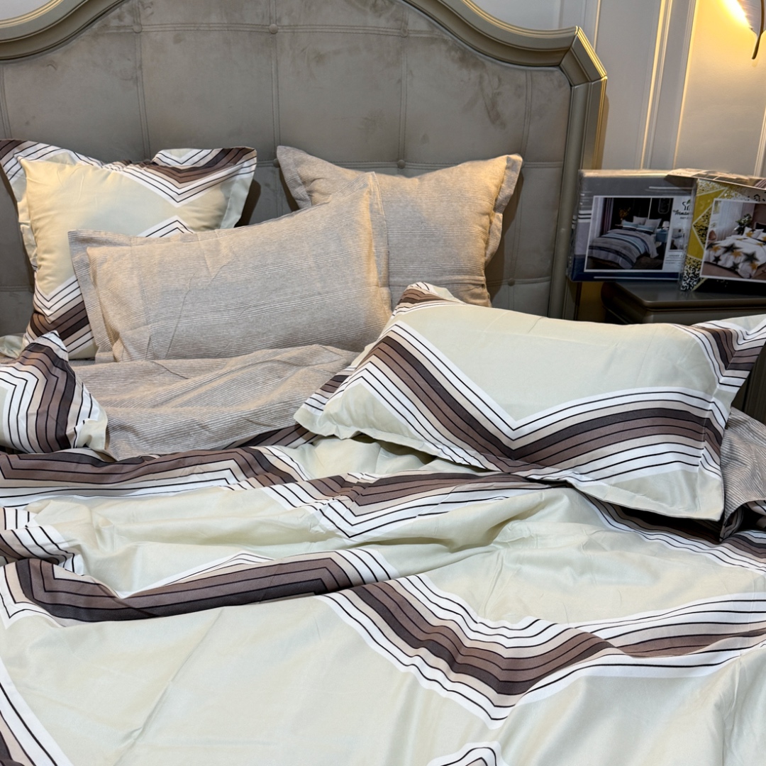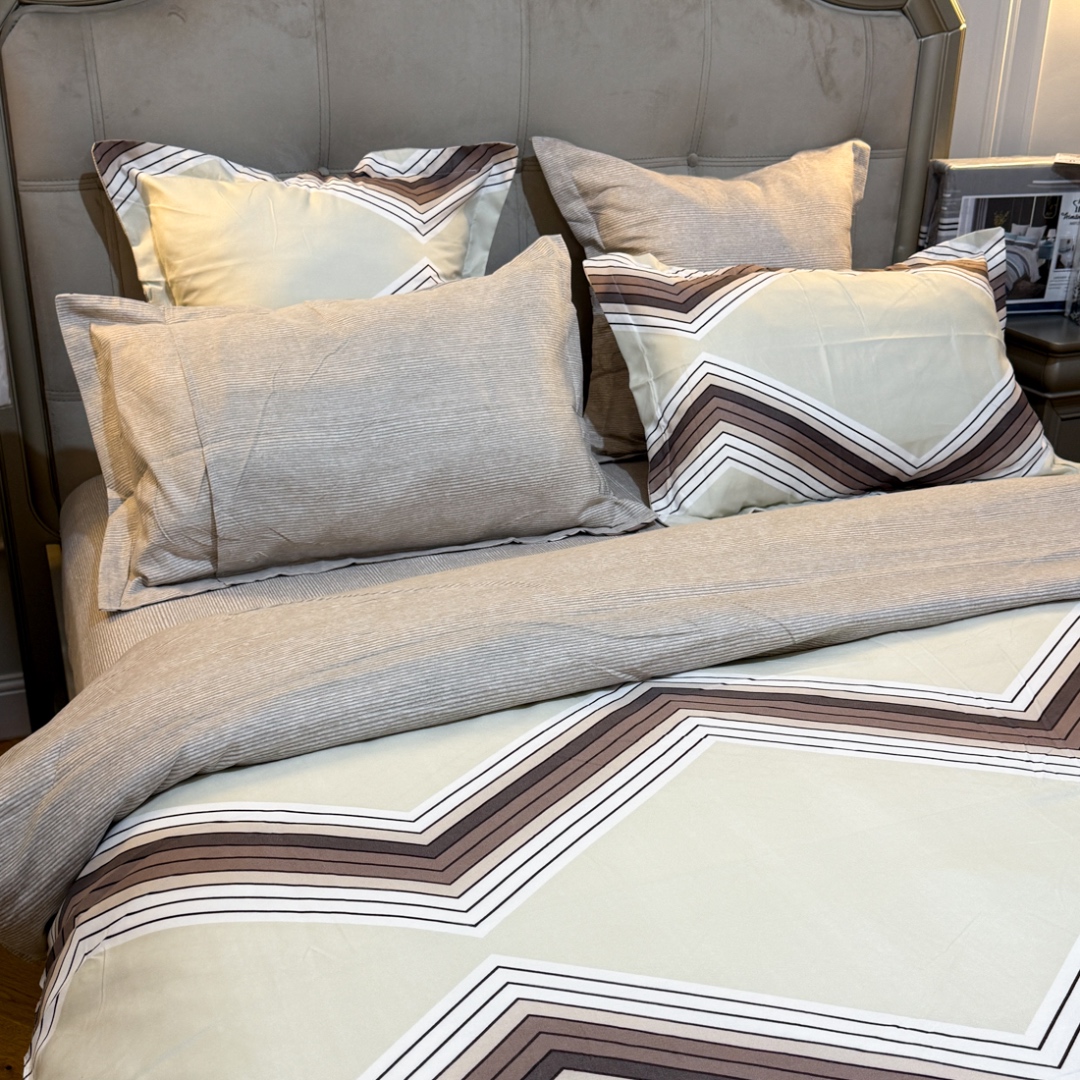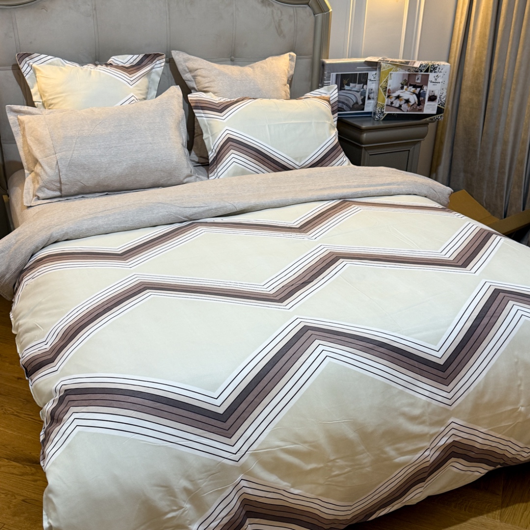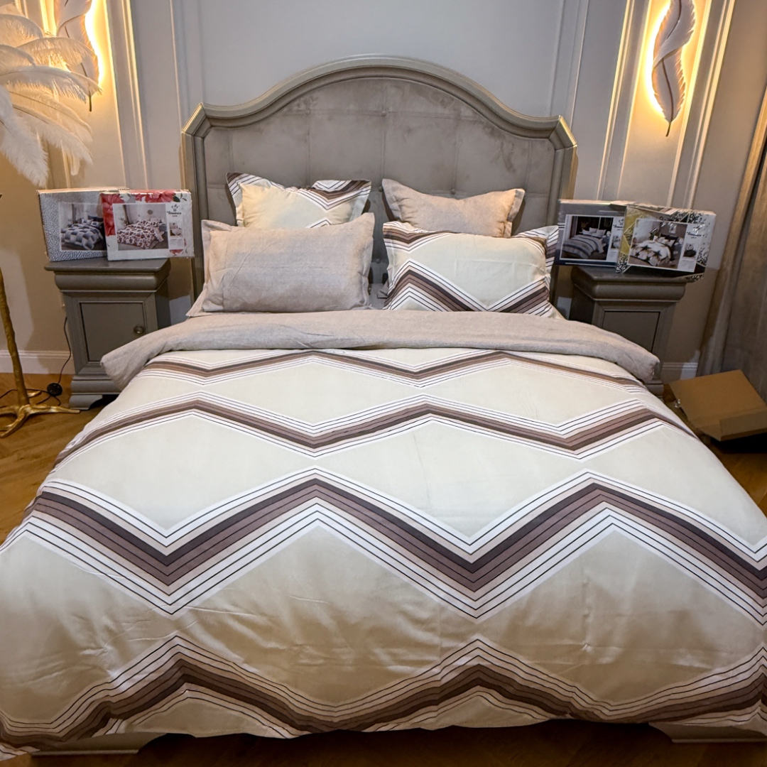 (OFERTA TRIO) Lenjerie Pat Dublu, FINET, 6 piese, Crem, Maro, Zig-Zag
