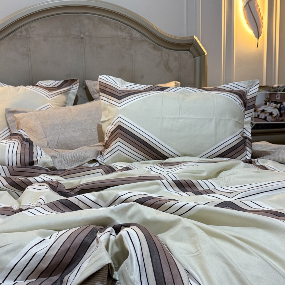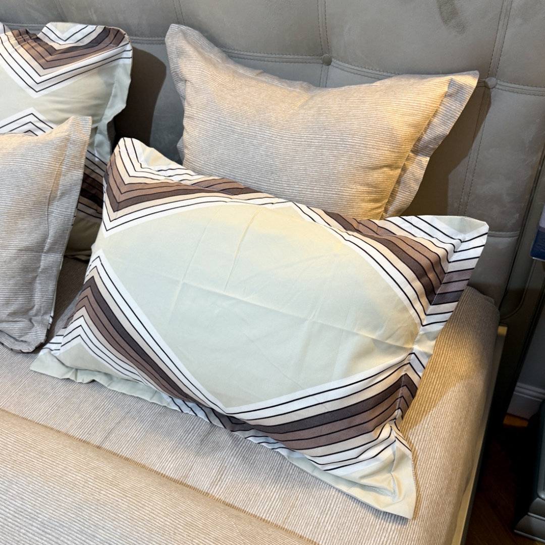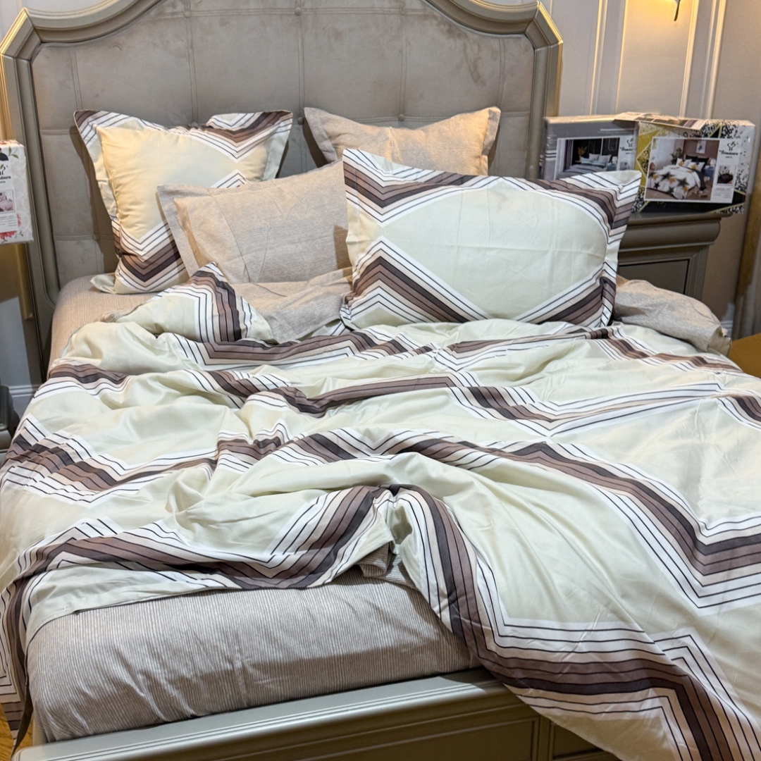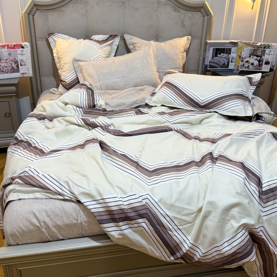 (OFERTA TRIO) Lenjerie Pat Dublu, FINET, 6 piese, Crem, Maro, Zig-Zag