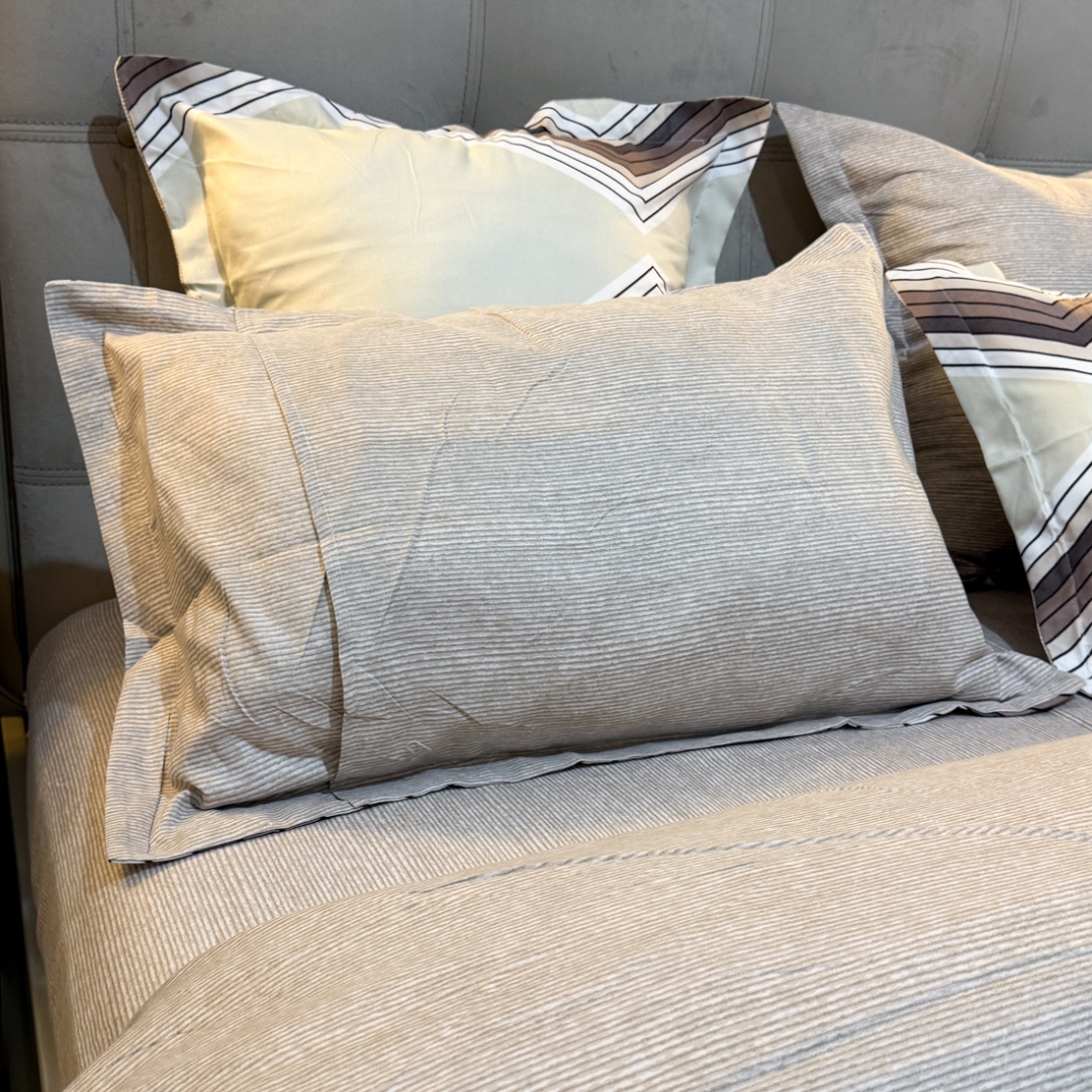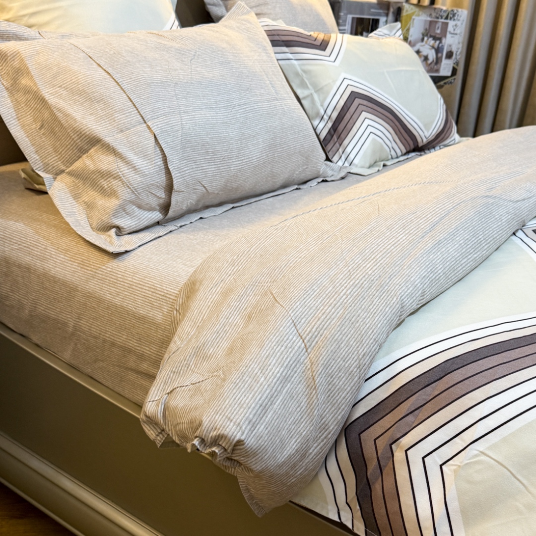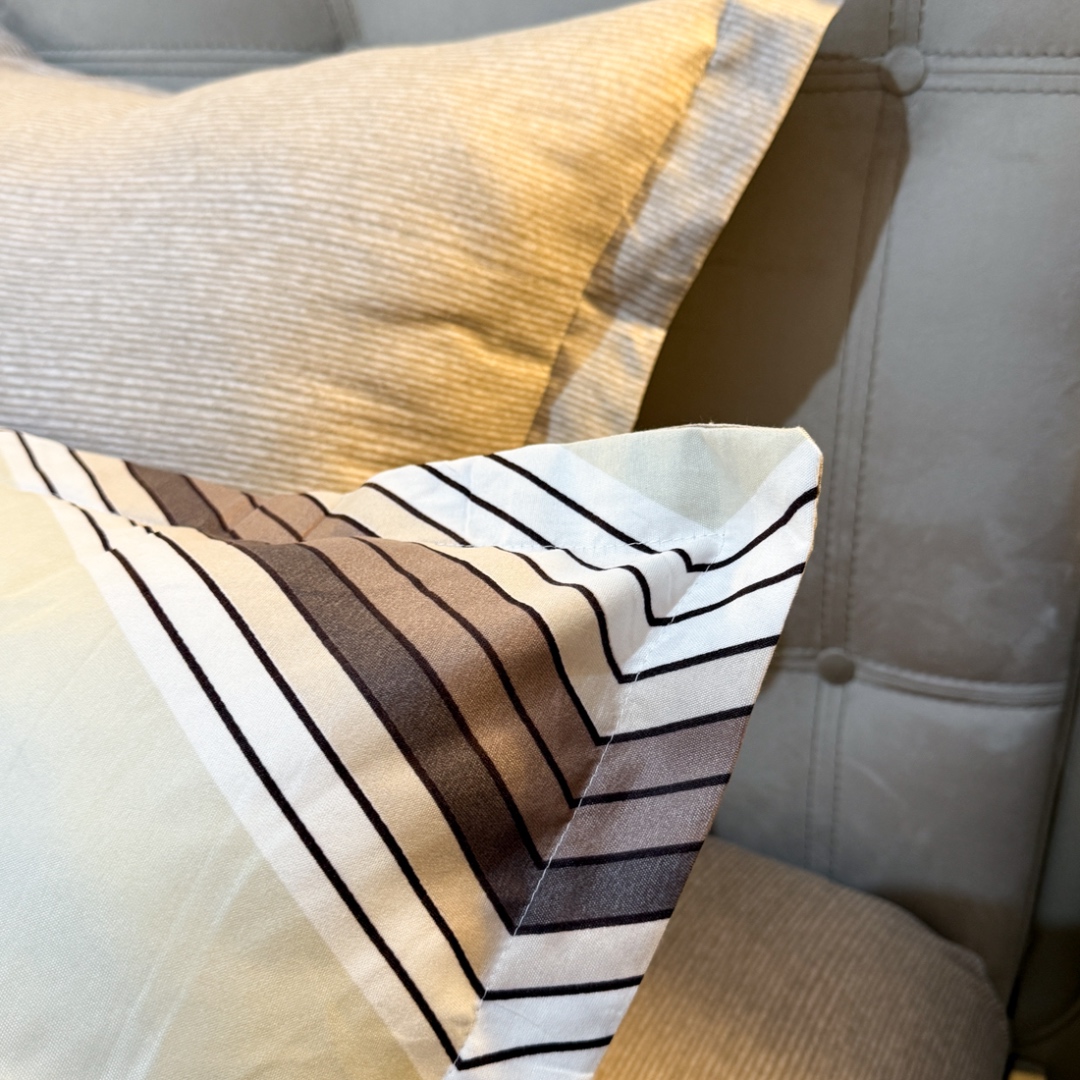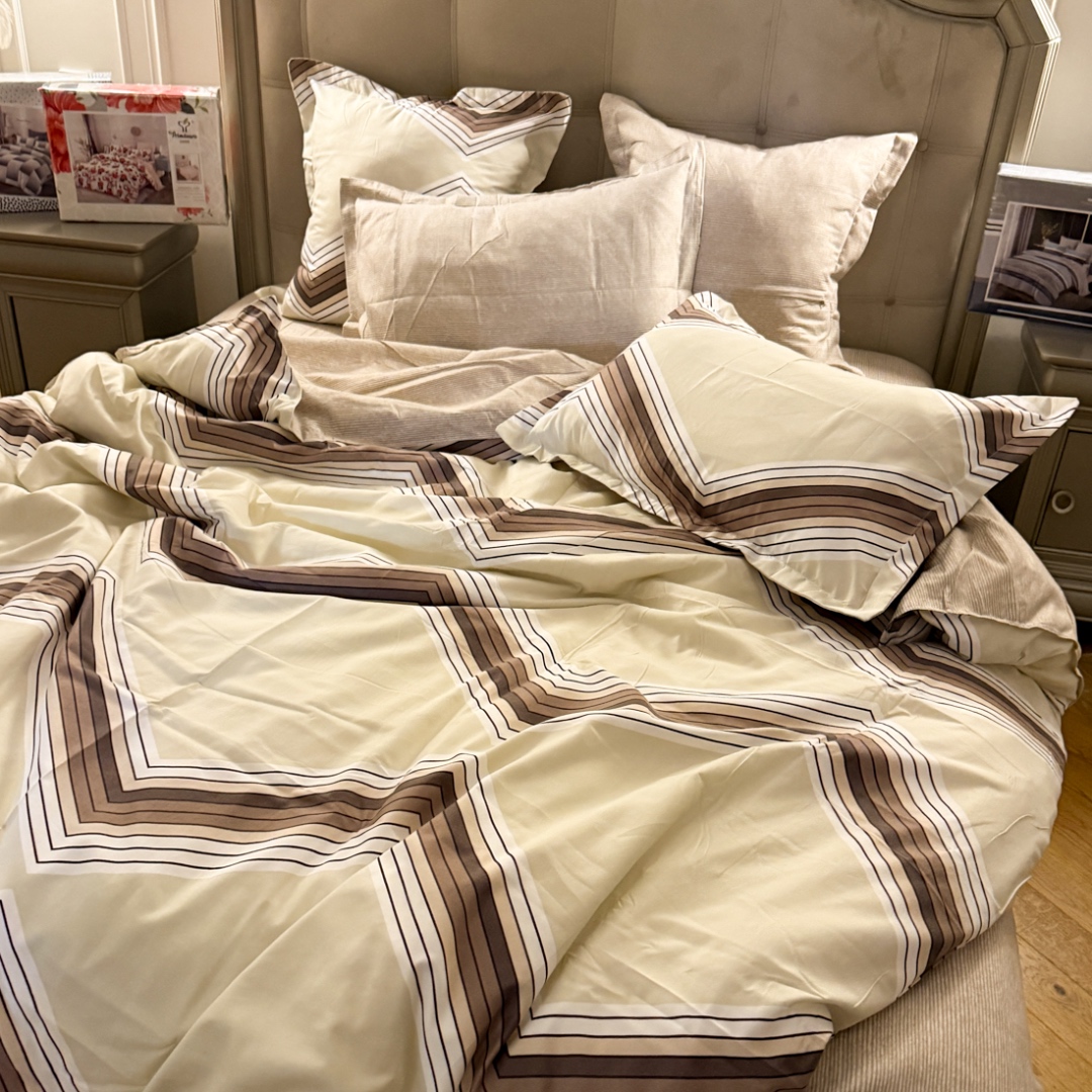 (OFERTA TRIO) Lenjerie Pat Dublu, FINET, 6 piese, Crem, Maro, Zig-Zag
