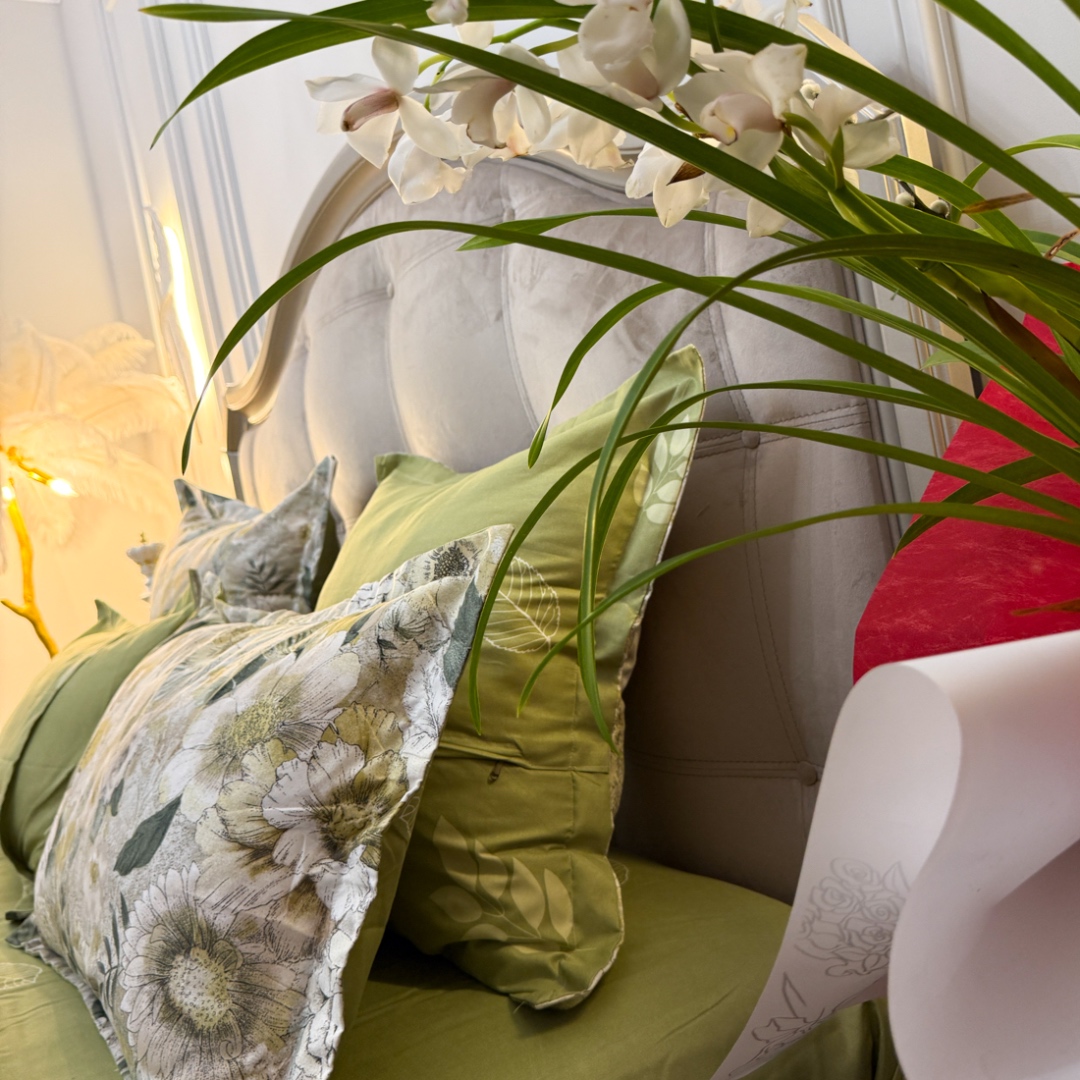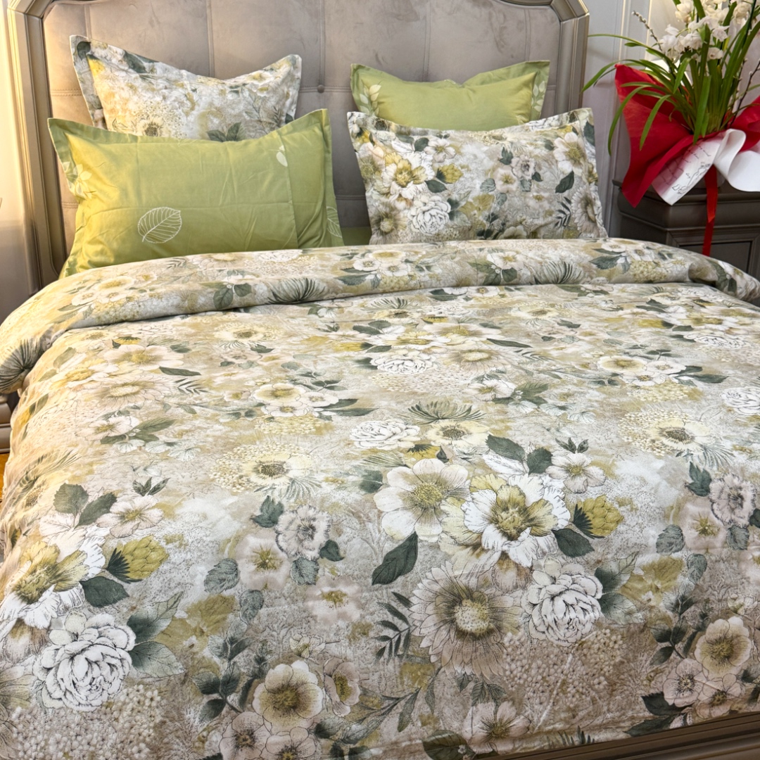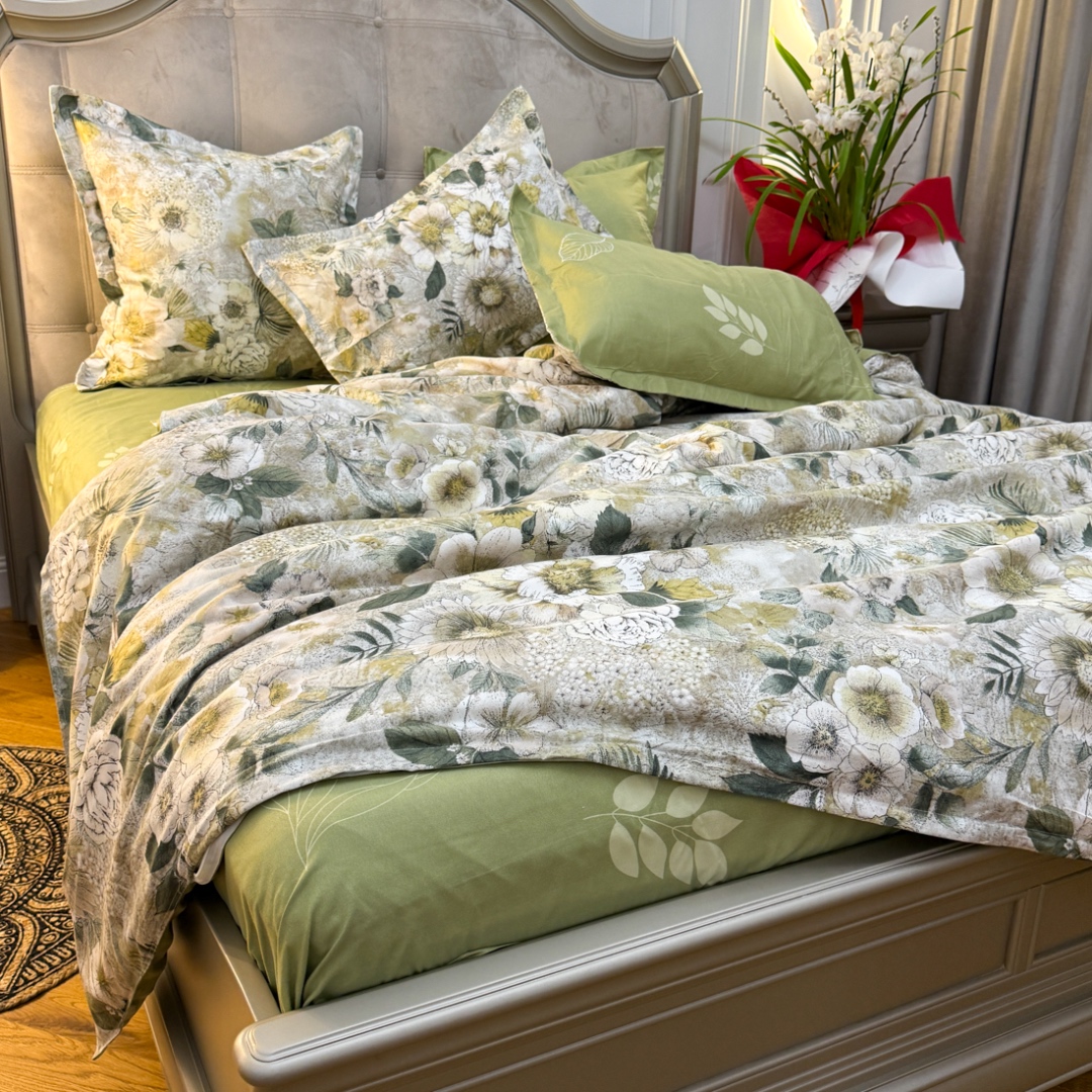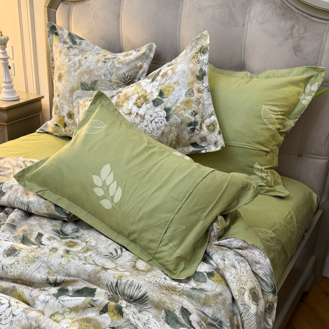 (OFERTA TRIO) Lenjerie Pat Dublu, FINET, 6 piese, Verde, Gri, Flori