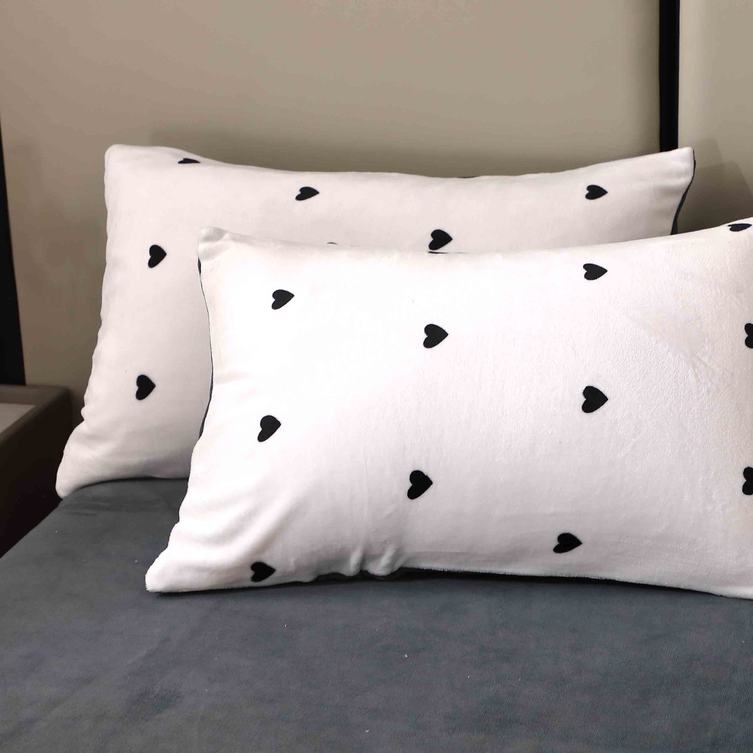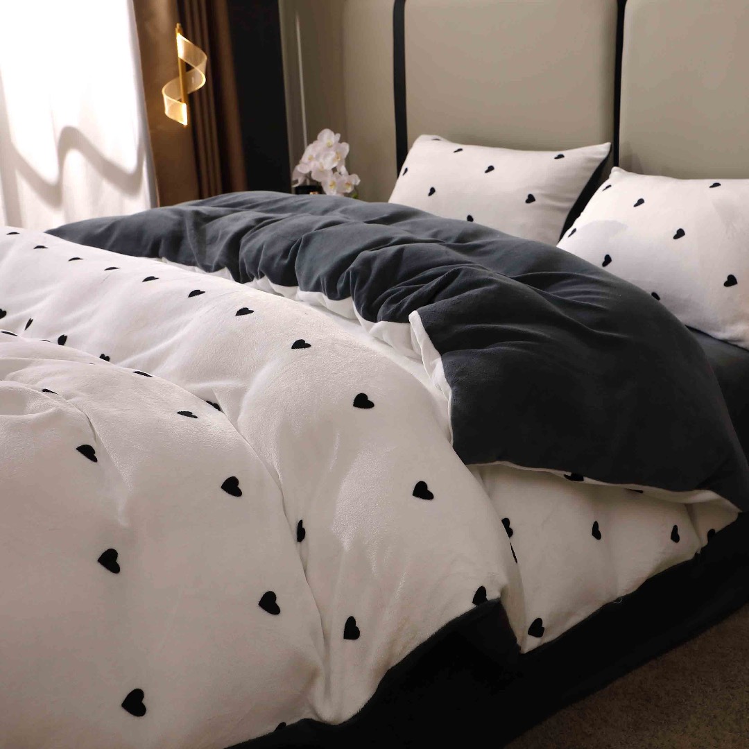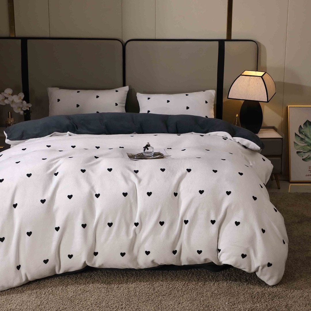 Lenjerie pat dublu, Super Pufoasa COCOLINO, 4 piese, Alb, Gri, Inimioare