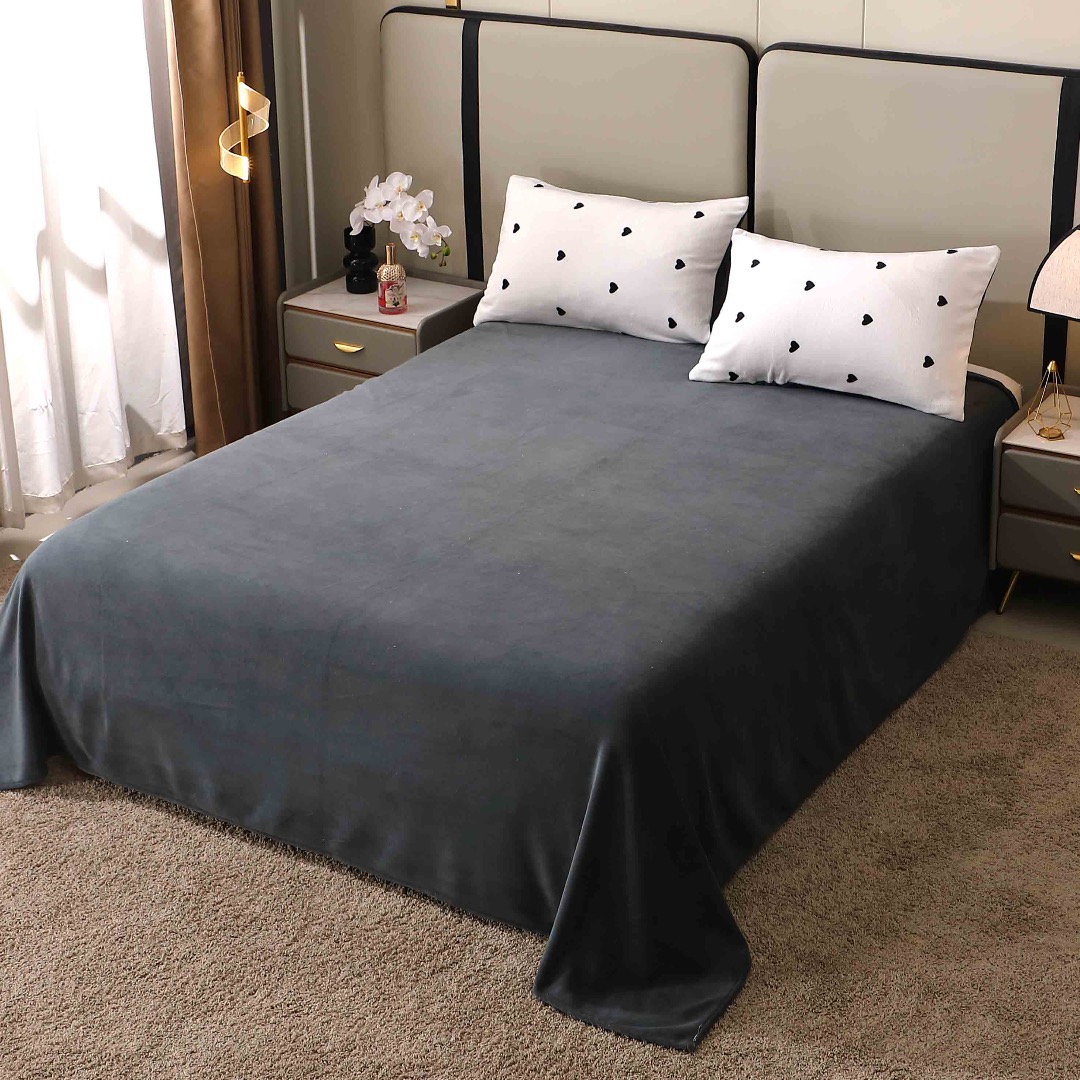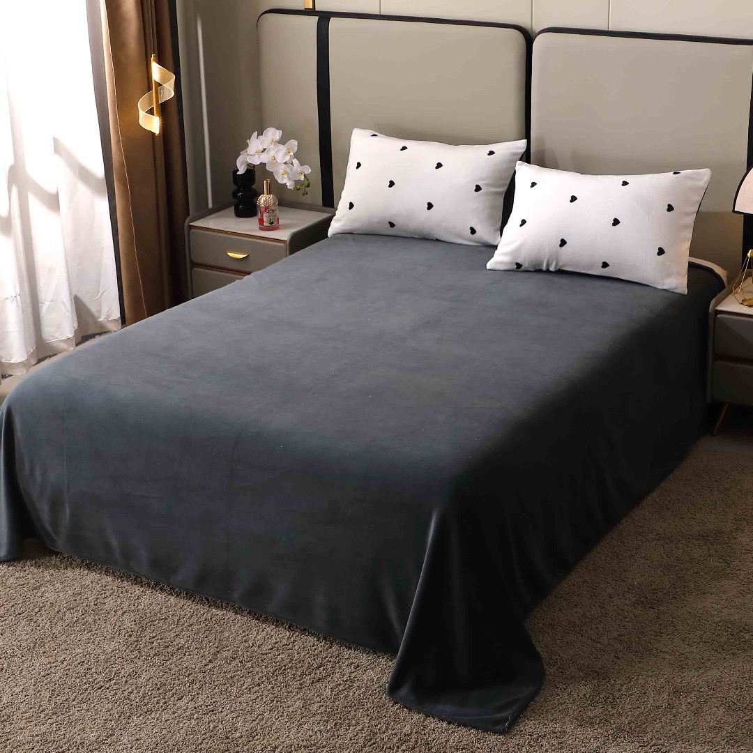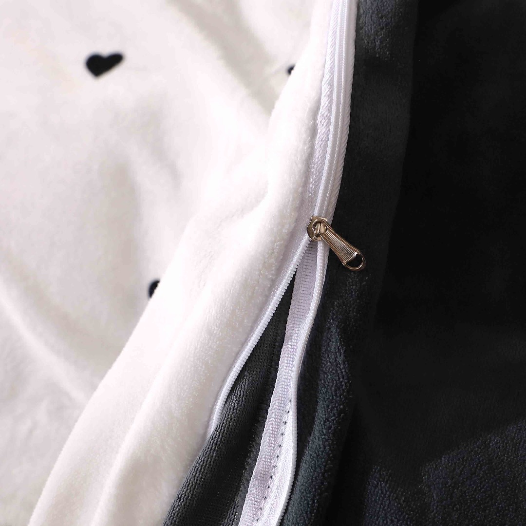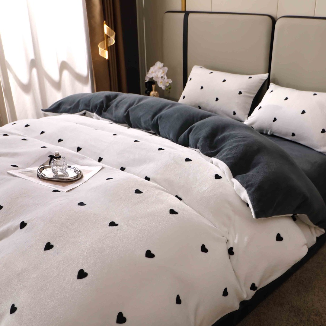 Lenjerie pat dublu, Super Pufoasa COCOLINO, 4 piese, Alb, Gri, Inimioare