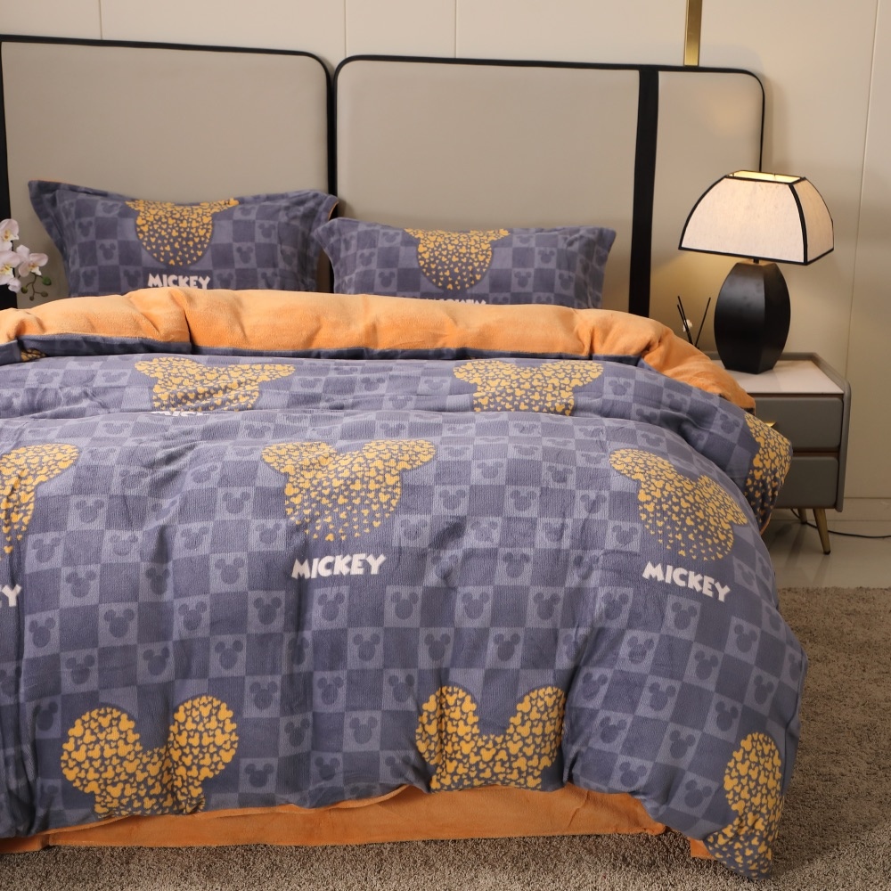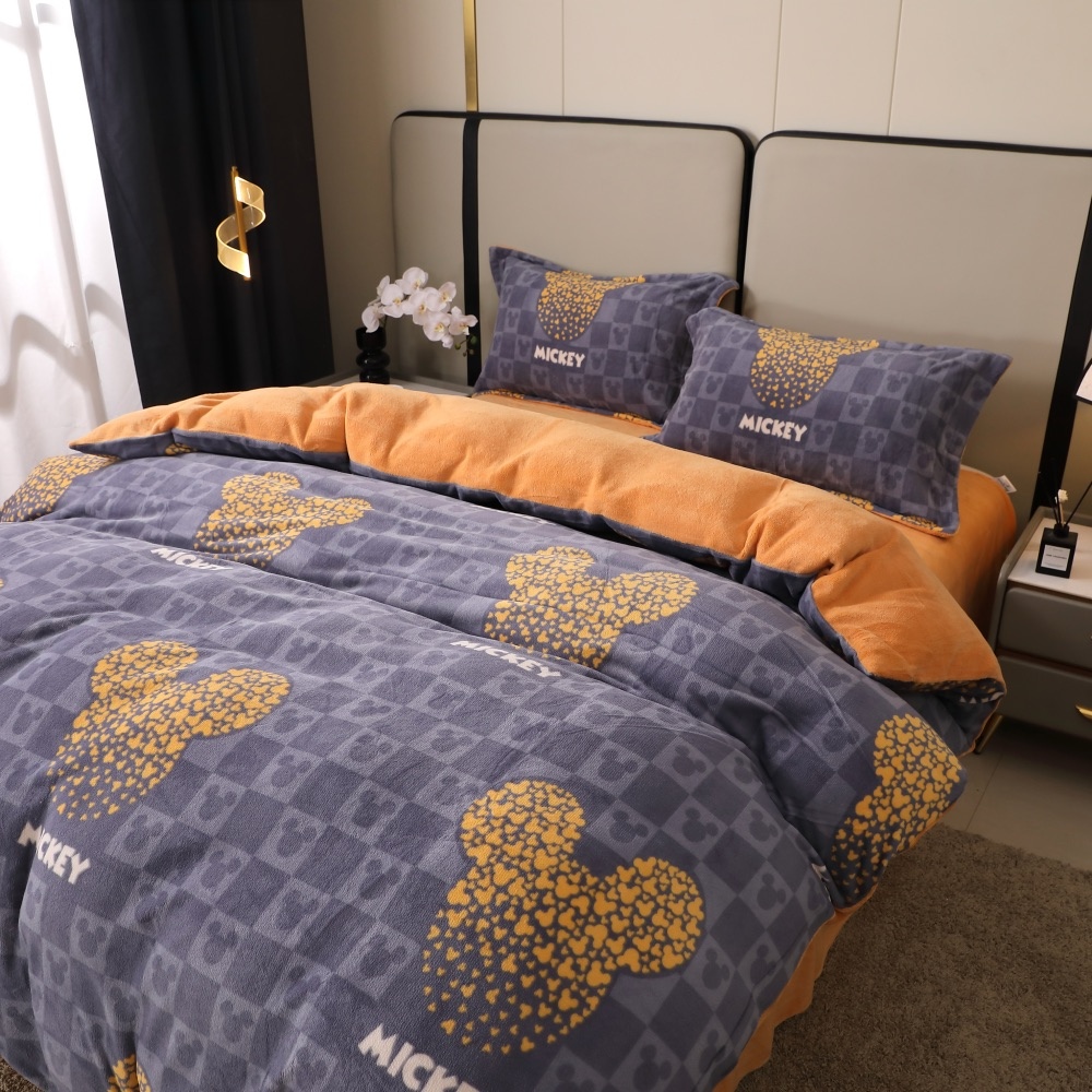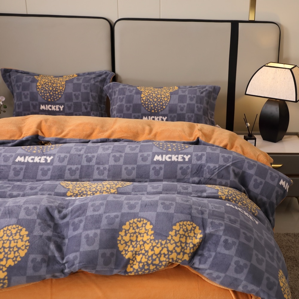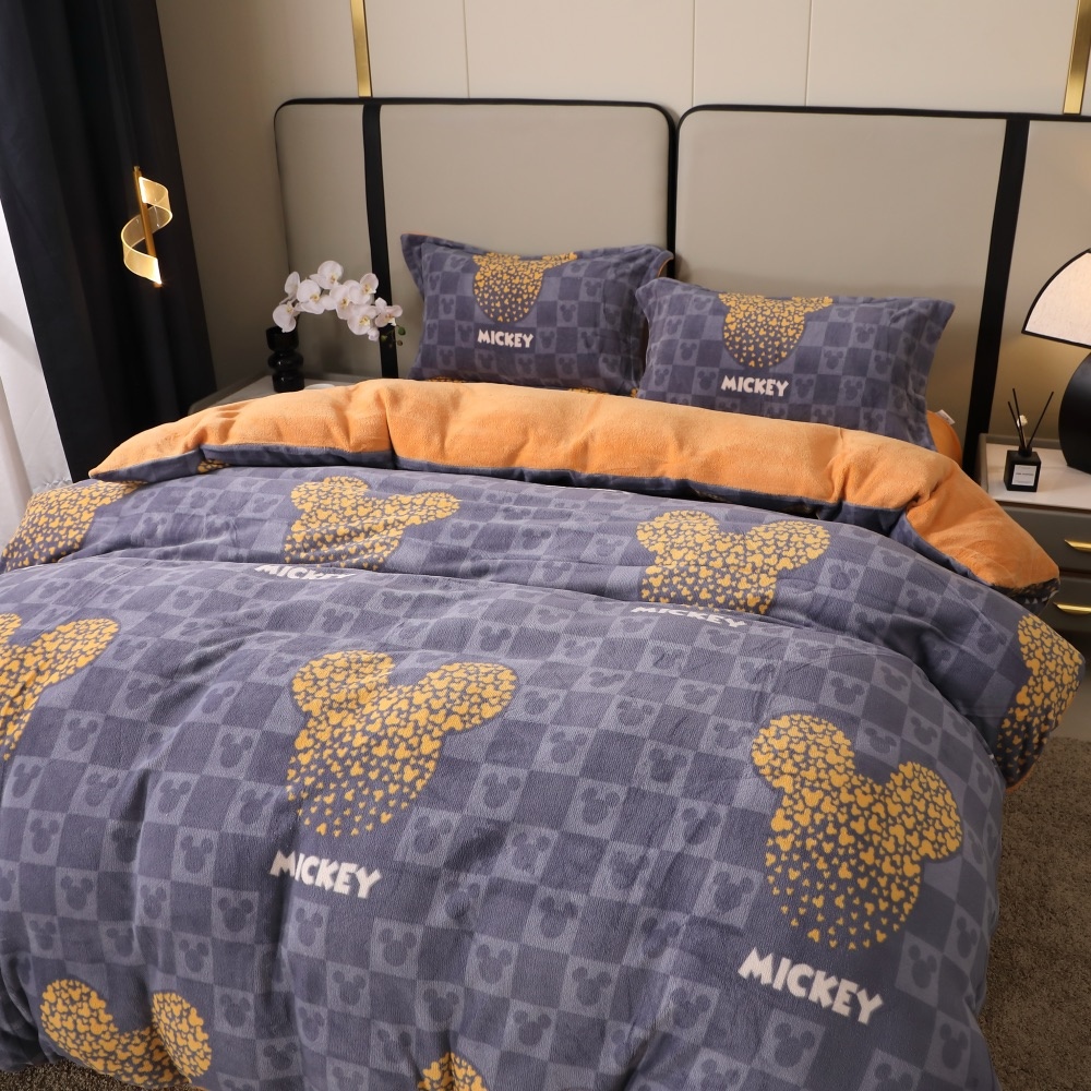 Lenjerie pat dublu, Super Pufoasa COCOLINO, 4 piese, Gri, Galben, Mickey