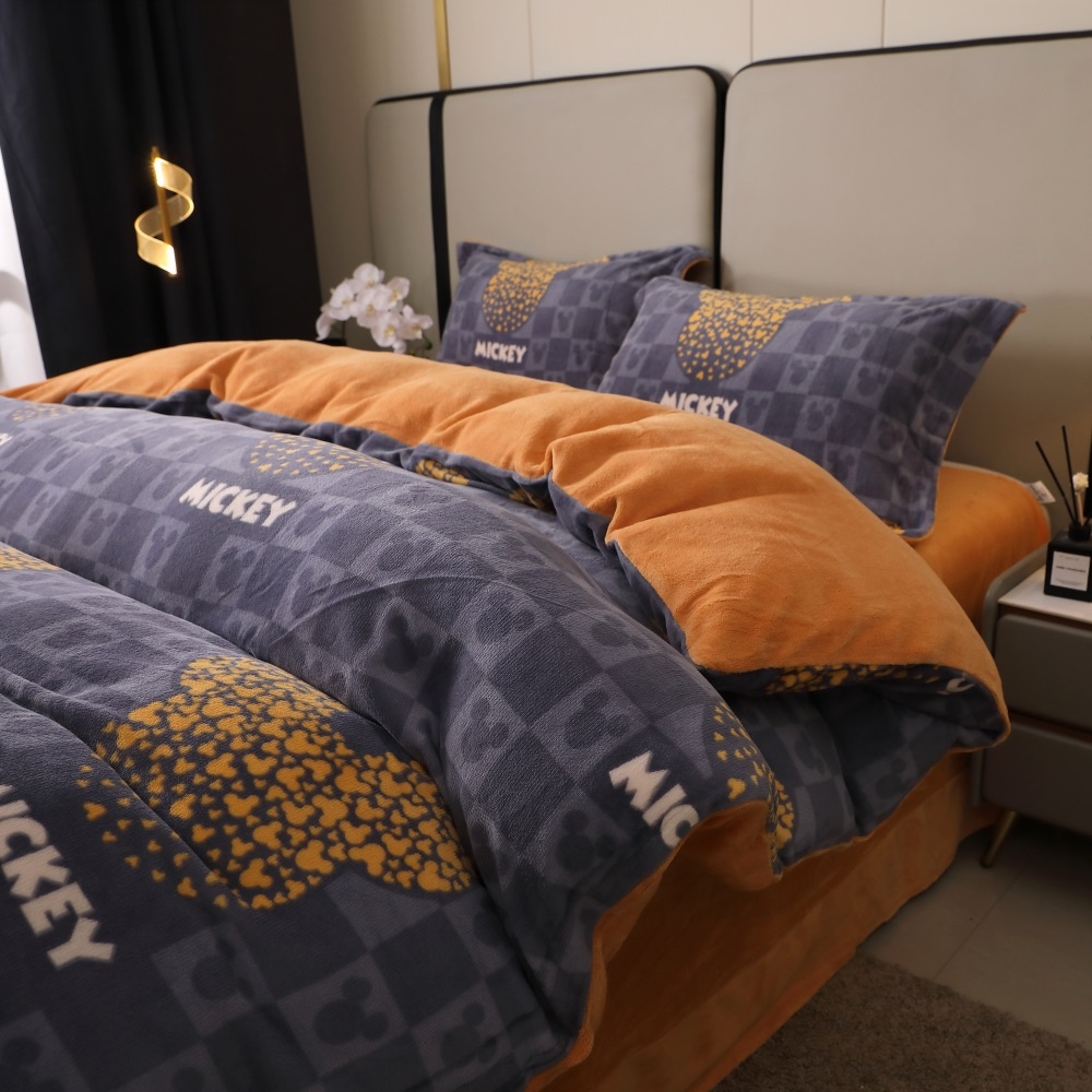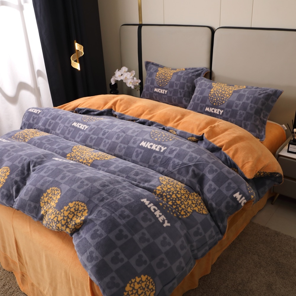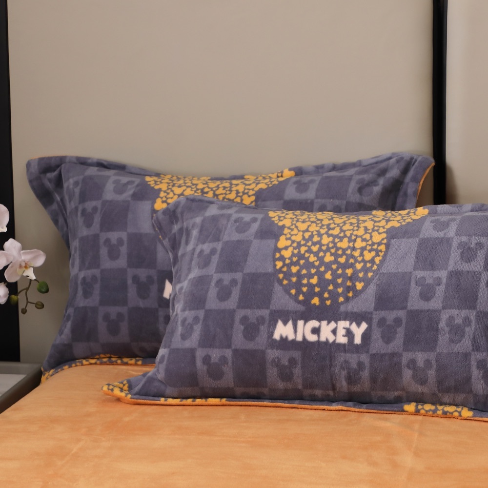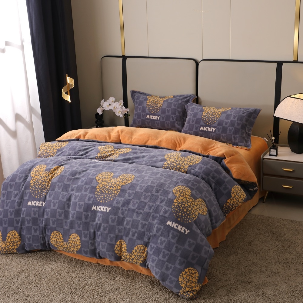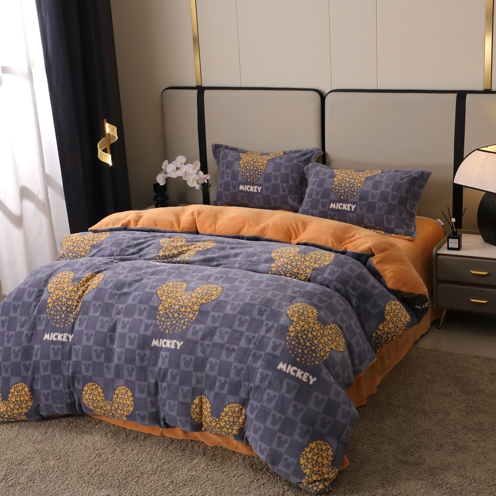 Lenjerie pat dublu, Super Pufoasa COCOLINO, 4 piese, Gri, Galben, Mickey