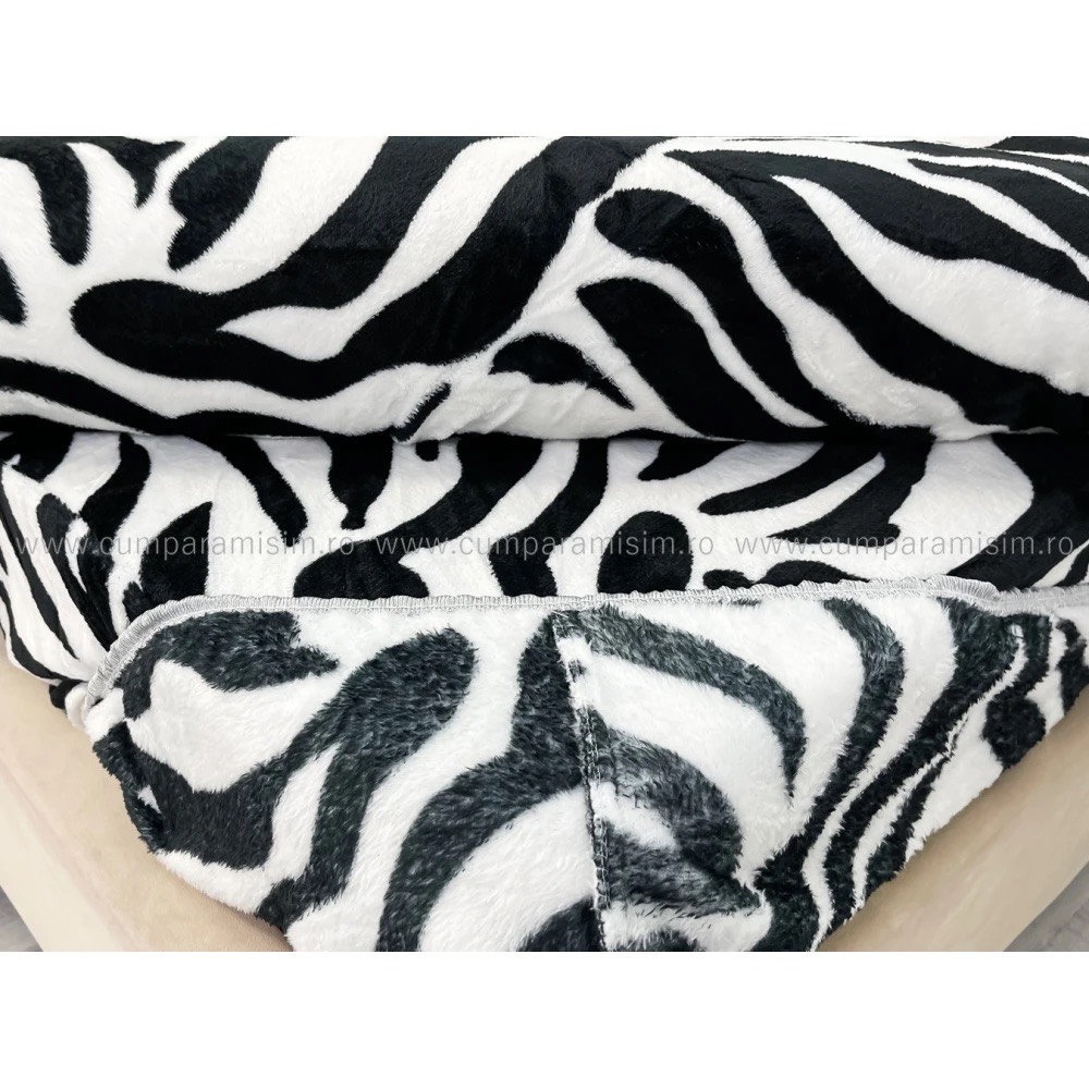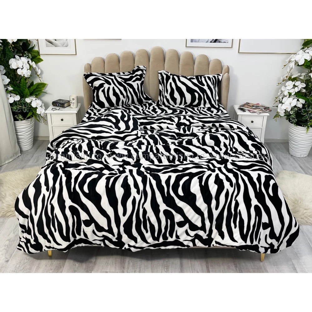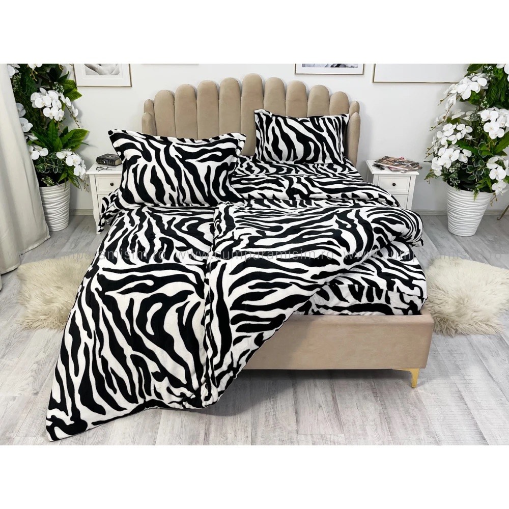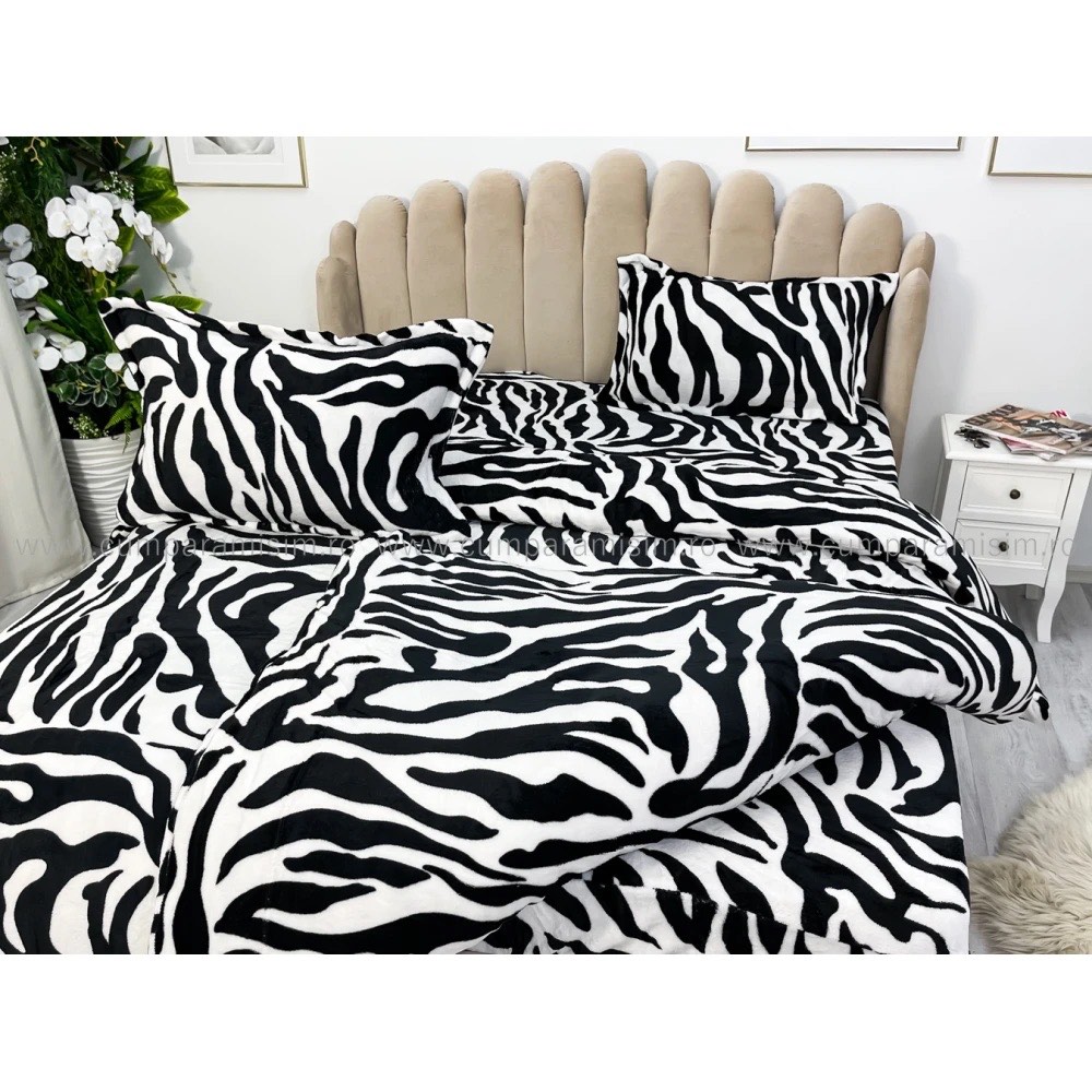 Lenjerie pat dublu, Super Pufoasa COCOLINO,cu ELASTIC, 4 piese, Alb, Negru, Zebra