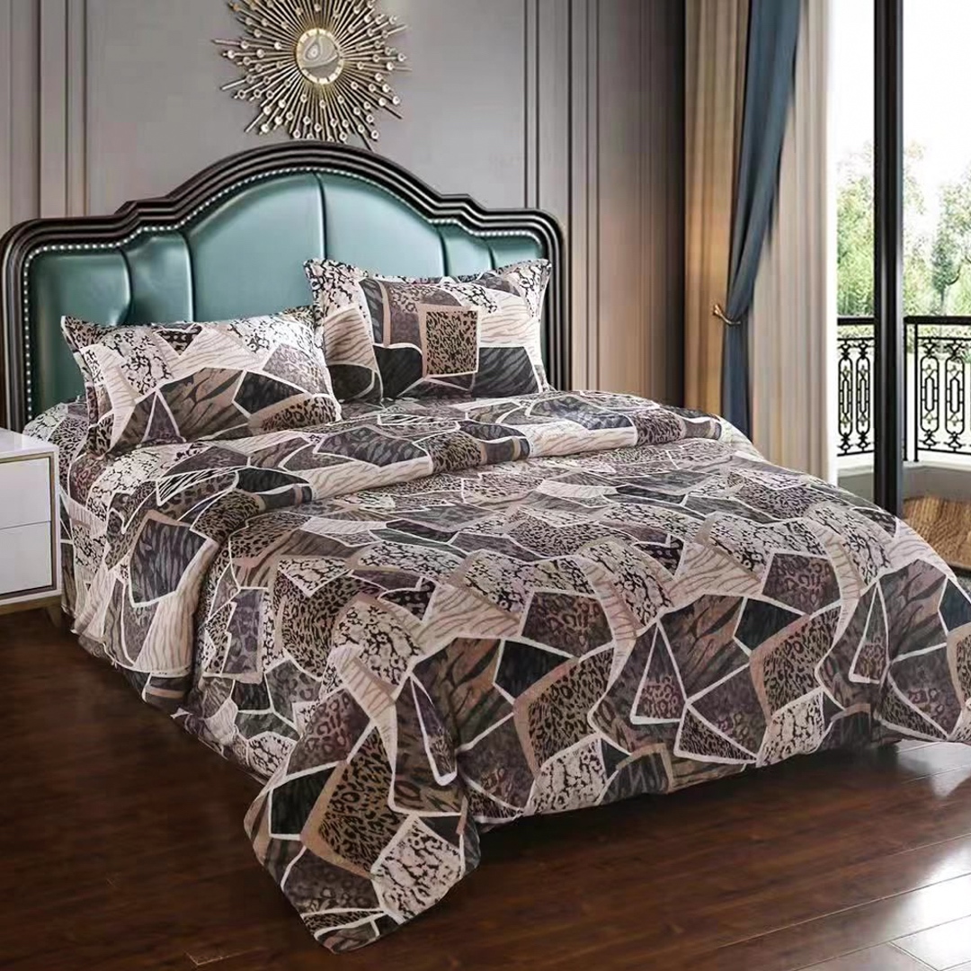 Lenjerie pat dublu, Super Pufoasa COCOLINO,cu ELASTIC, 4 piese, Bej-Maro, model clasic