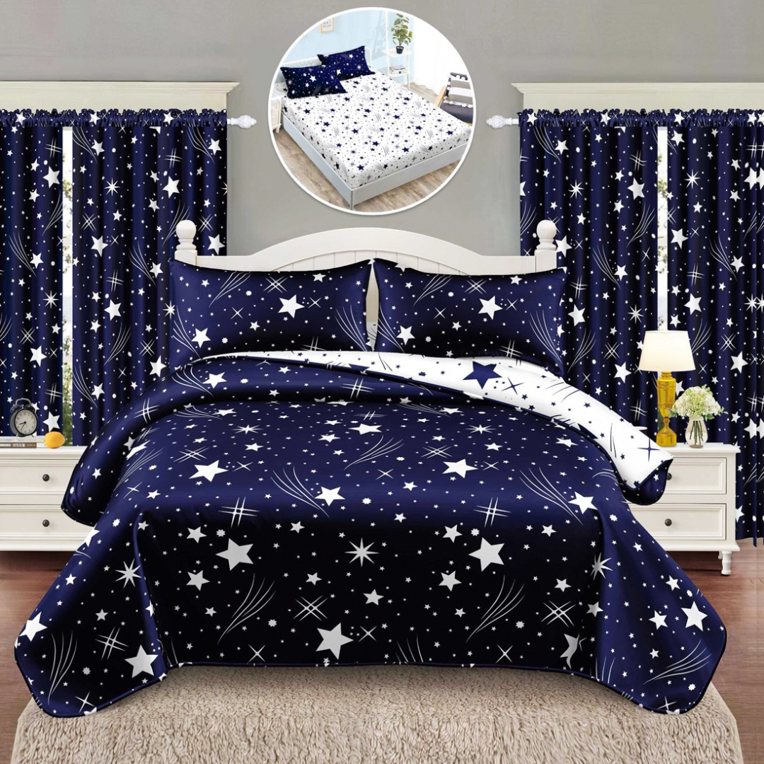 Set lenjerie de pat Matrimonial Compact (saltea 140x200 cm, pilota 160x200 cm) din bumbac finet, 6 piese, cu draperii incluse – Model fluturi Iti prezentam un set complet de lenjerie de pat din finet, format din 8 piese, inclusiv 2 draperii cu rejansa multifunctionala pentru o fixare usoara pe bara, dar si pe sina . Acest set unic are un design elegant si rafinat, care se regaseste atat pe lenjeria de pat, cat si pe draperii, oferind o armonie vizuala perfecta in dormitorul tau. Detal