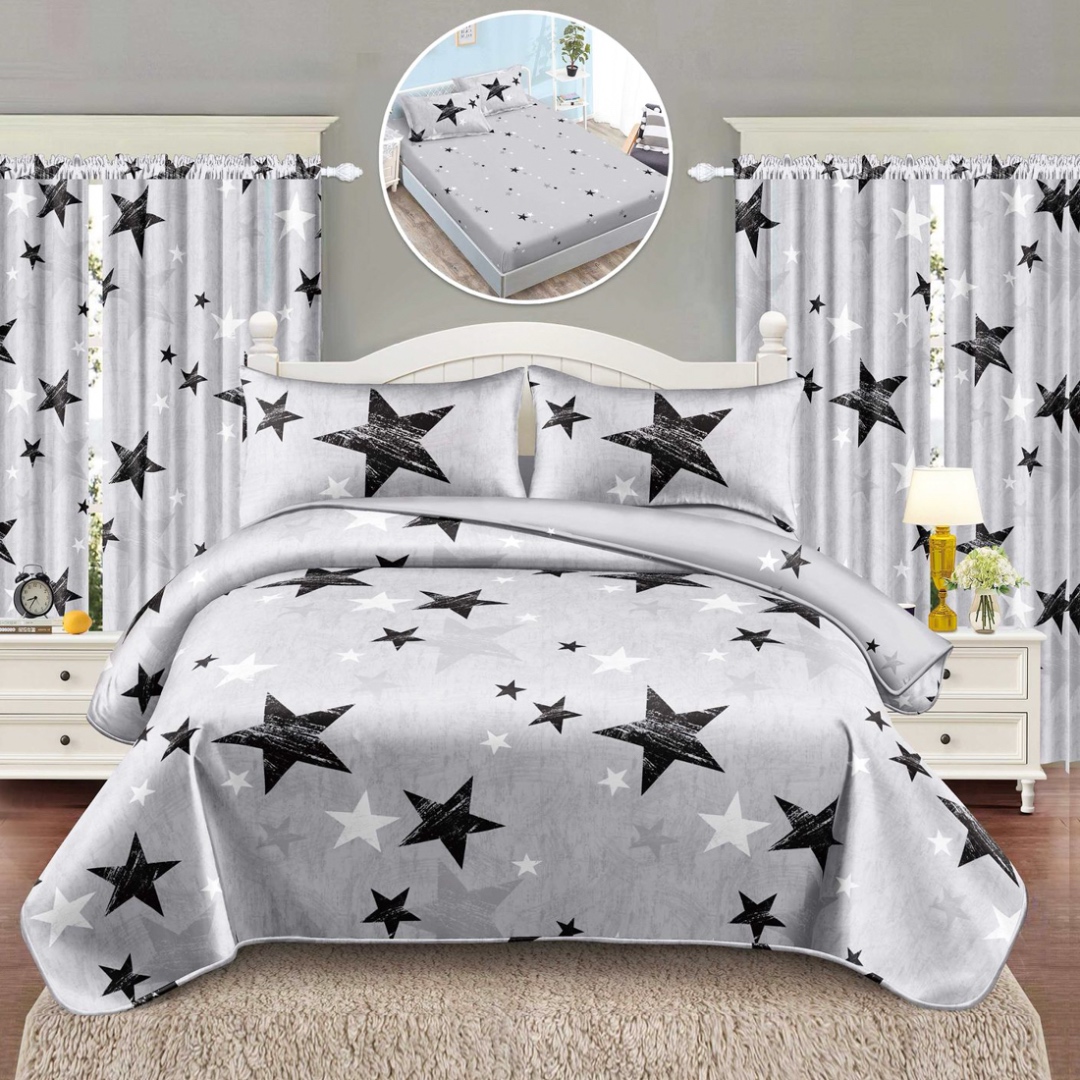 Set lenjerie de pat Matrimonial Compact (saltea 140x200 cm, pilota 160x200 cm) din bumbac finet, 6 piese, cu draperii incluse – Model fluturi Iti prezentam un set complet de lenjerie de pat din finet, format din 8 piese, inclusiv 2 draperii cu rejansa multifunctionala pentru o fixare usoara pe bara, dar si pe sina . Acest set unic are un design elegant si rafinat, care se regaseste atat pe lenjeria de pat, cat si pe draperii, oferind o armonie vizuala perfecta in dormitorul tau. Detal