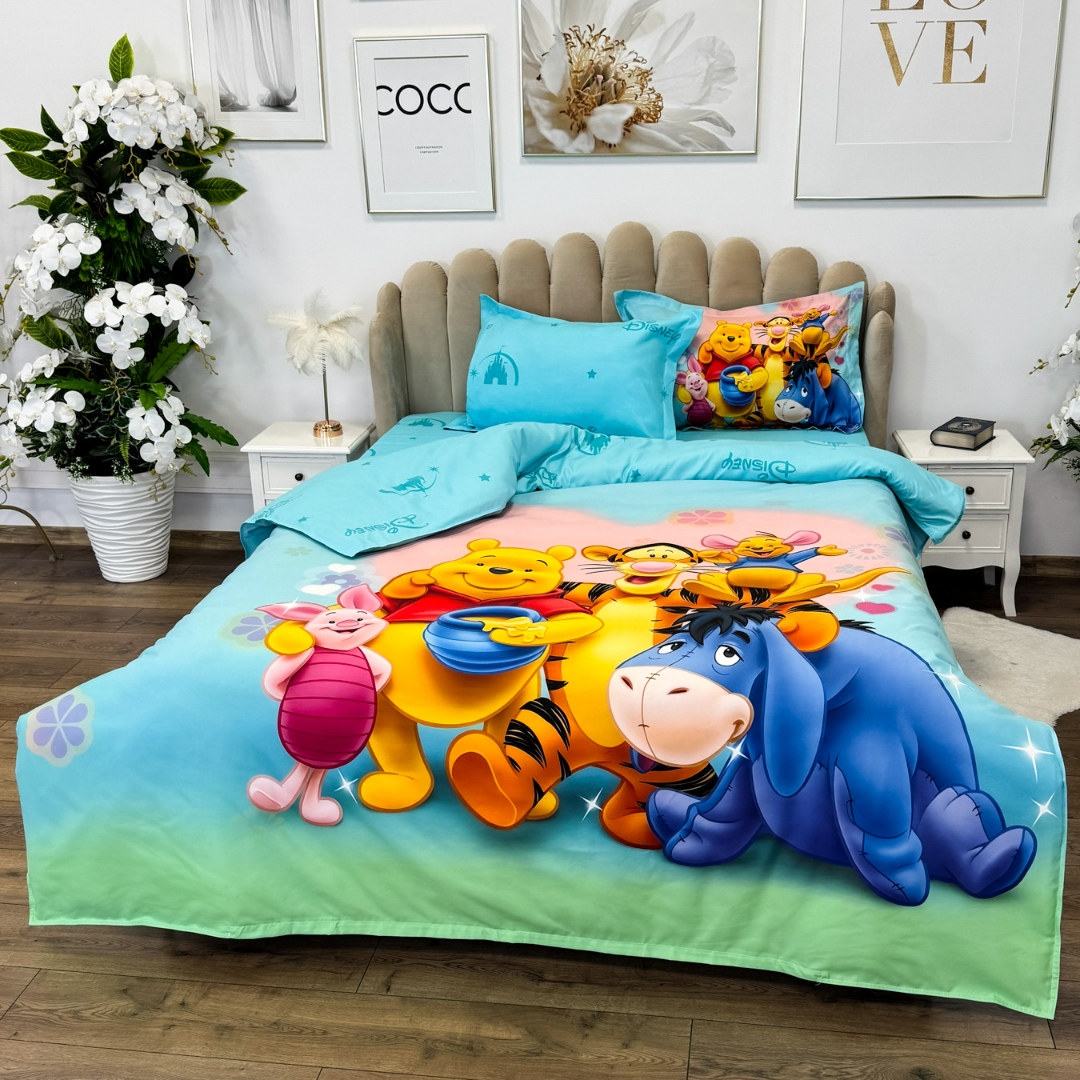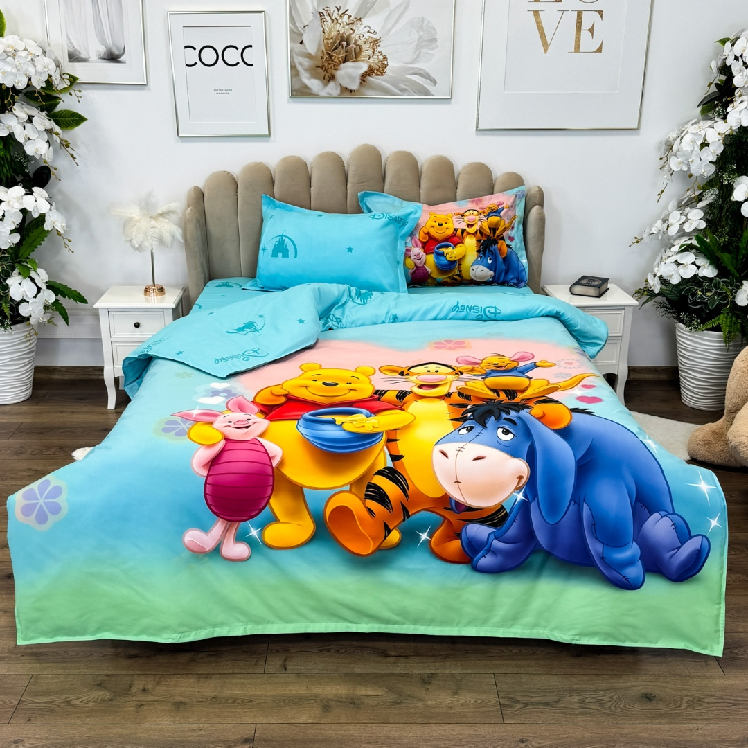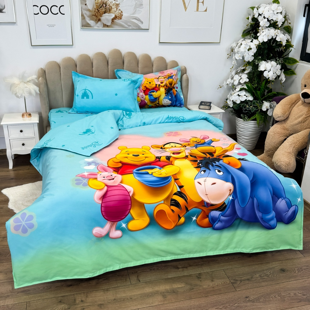 Lenjerie pat single FINET, 4 piese, 100% bumbac – cu imprimeu identic cu fotografia Transforma-ti dormitorul intr-un spatiu elegant si confortabil cu aceasta lenjerie de pat dublu FINET, cu 4 piese, realizata din bumbac 100% de calitate superioara si cu imprimeu identic cu poza de prezentare. Design modern, exact ca in pozaImprimeul este redat fidel, exact ca in imagine – fara surprize la livrare. Culorile sunt intense, durabile, iar detaliile sunt atent realizate, adaugand o nota sof