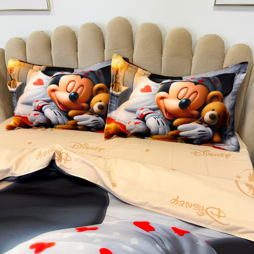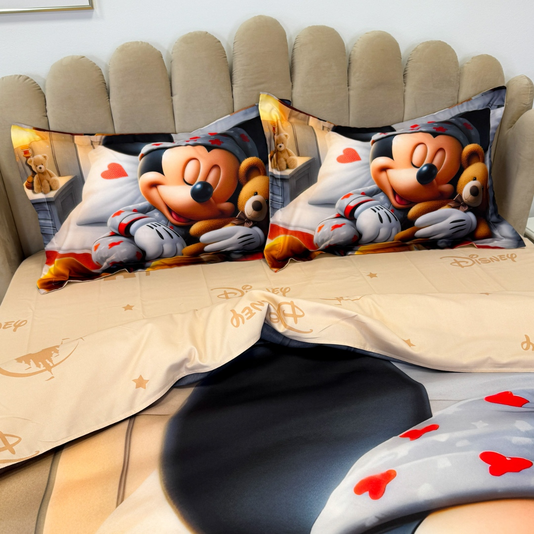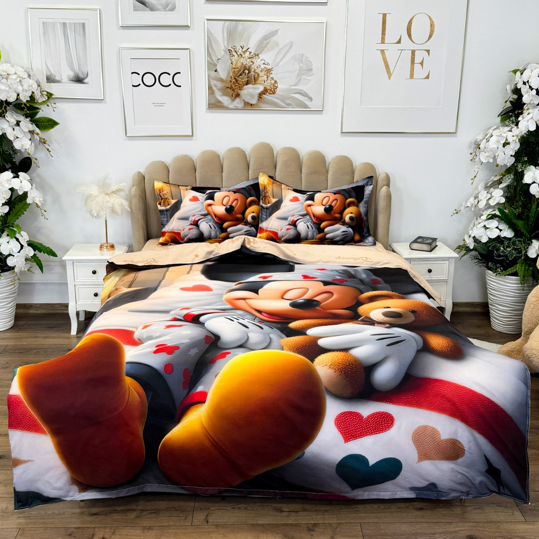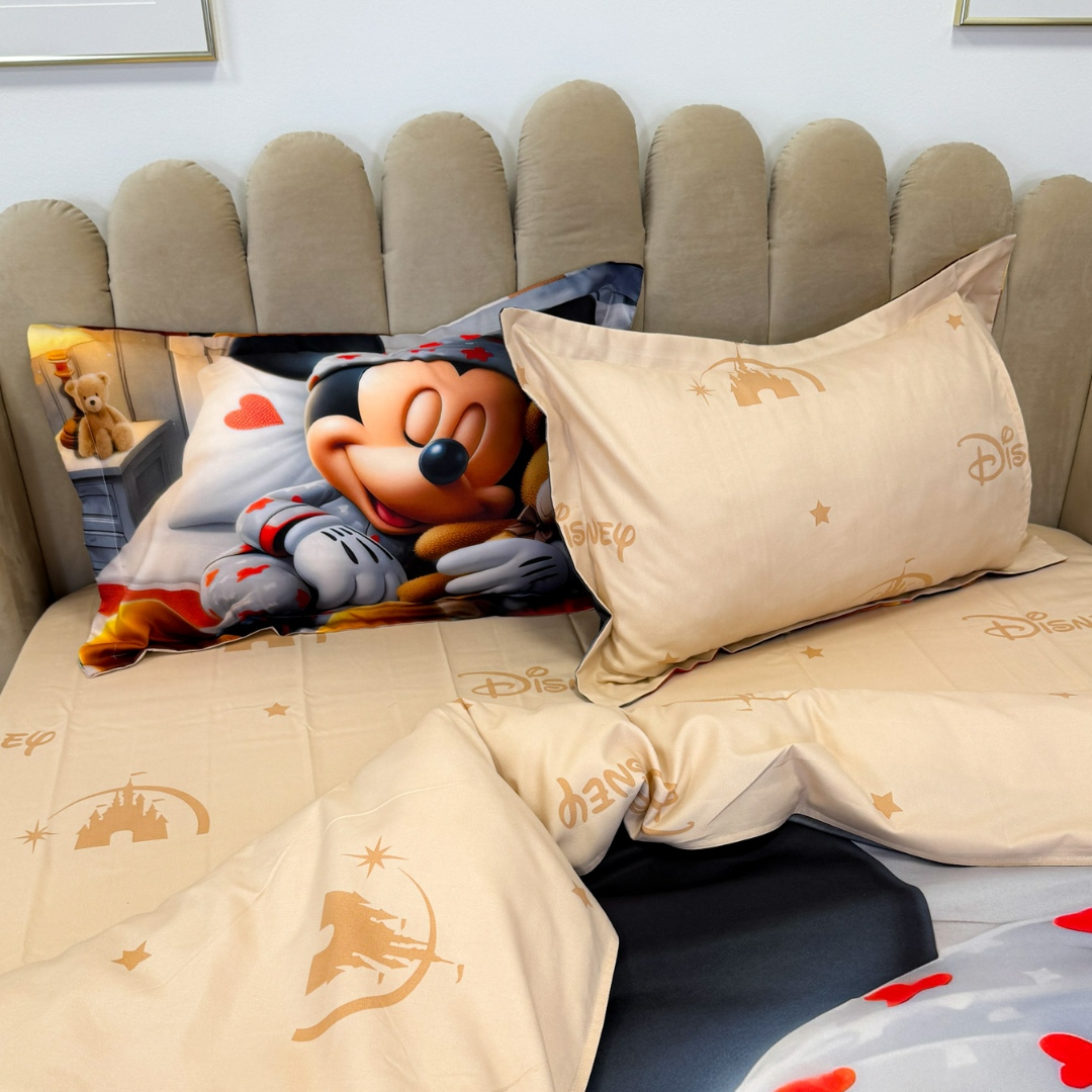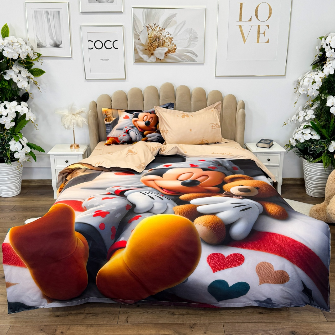 Lenjerie pat single (90x200cm, 100x200cm), FINET, 4 piese, IDENTICA CU POZA, Gri, Bej, Mickey Mouse