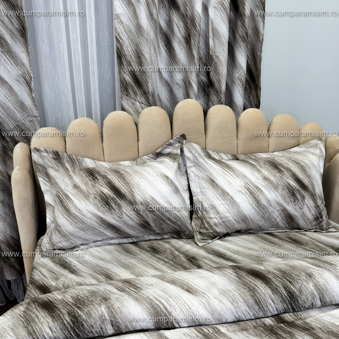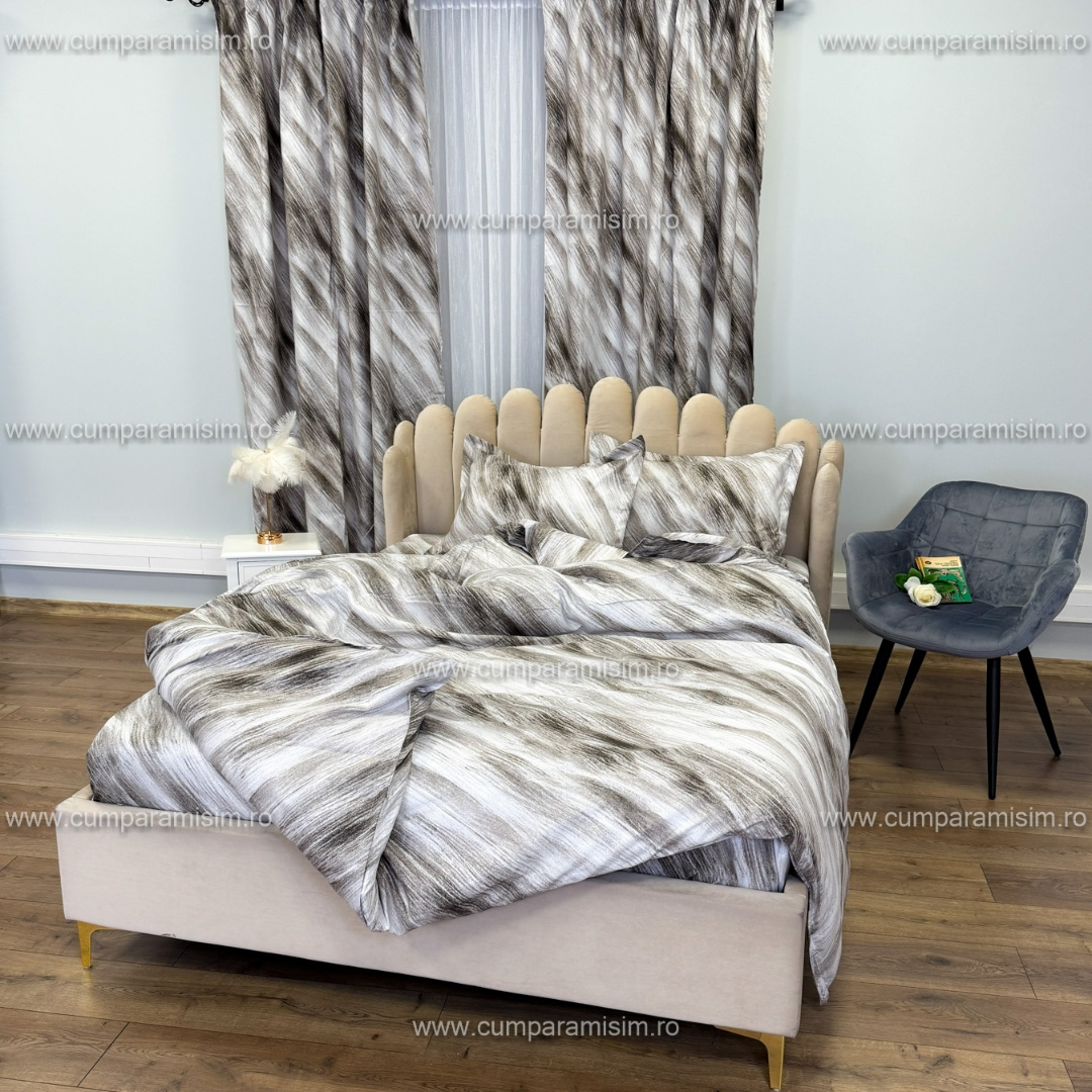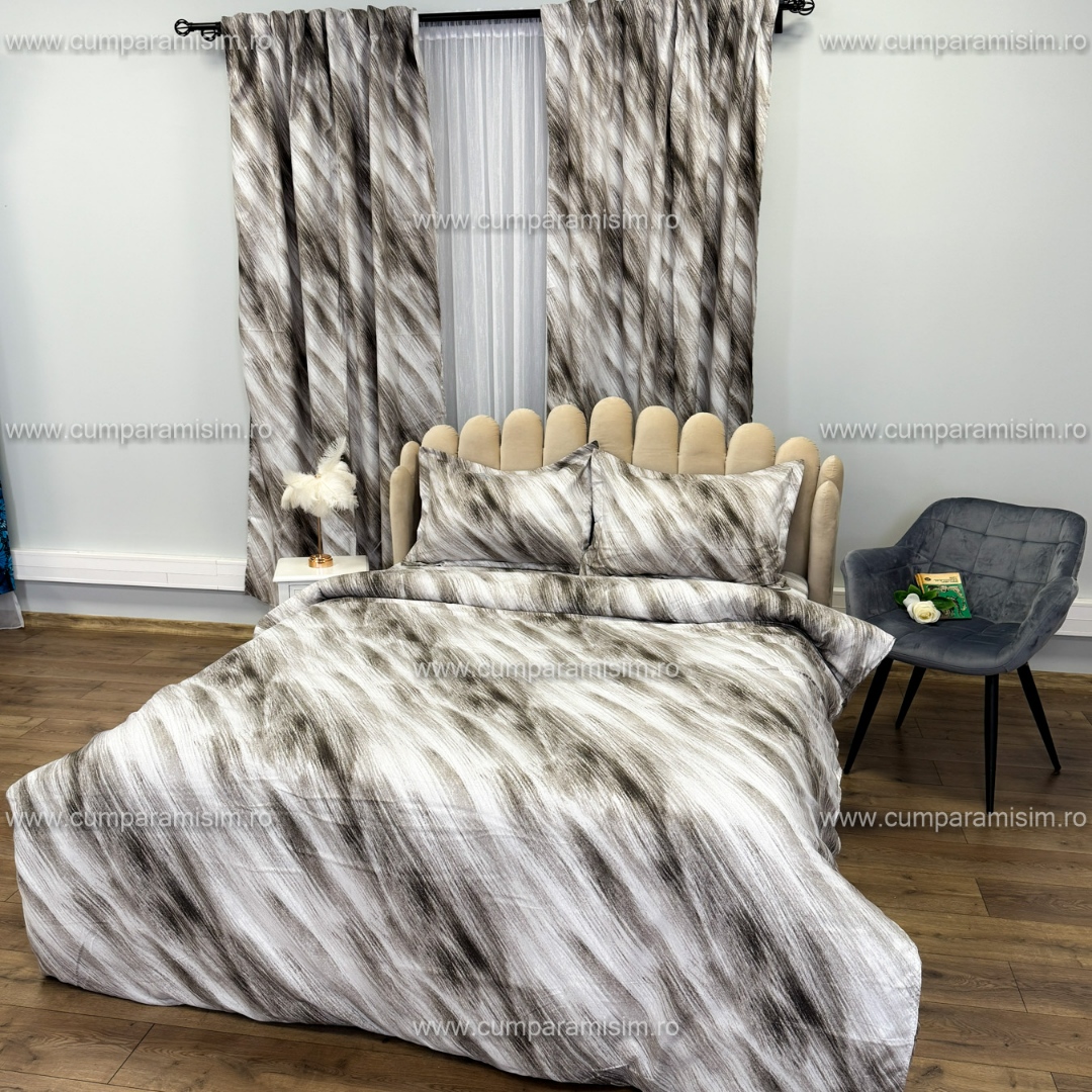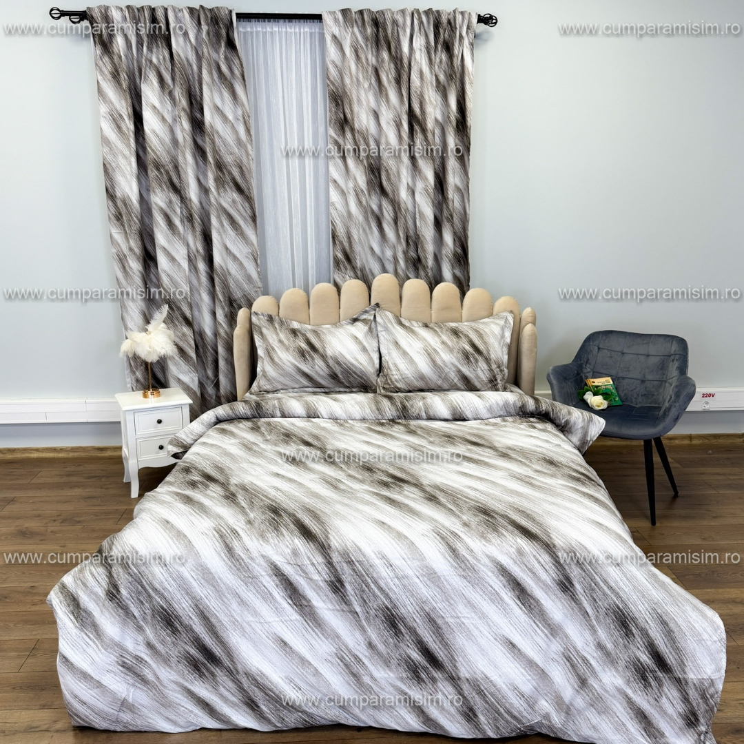 Lenjerie Pat Single, FINET, 6 piese, cu 2 DRAPERII INCLUSE, Gri, Model Clasic