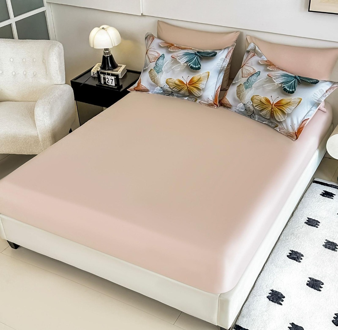 Lenjerie pat single, FINET, Imprimeu Digital - Identic cu poza, 4 piese, cu ELASTIC, Jojo Home, Gri, Bej, Fluturi