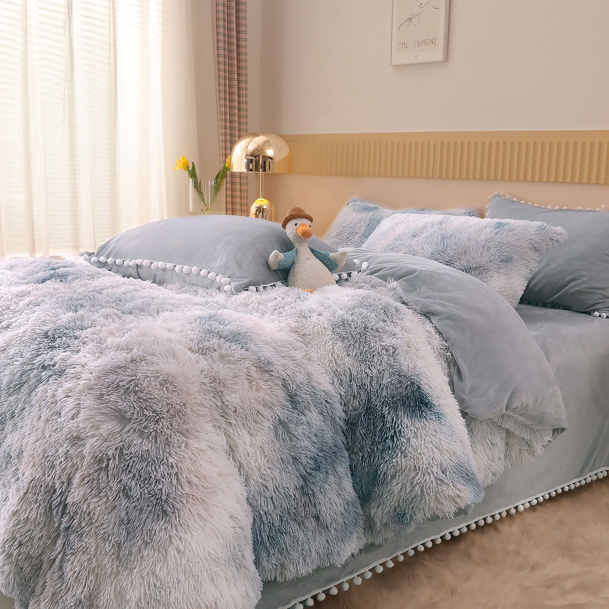 Lenjerie pufoasa COCOLINO cu 6 piese, pentru pat dublu. Produsul prezinta doua texturi de material cocolino, astfel incat cearsaful de pat, partea inferioara a cearsafului de pilota si partea inferioara a fetelor de perna sunt din microfibra plusata fina; cearsaful de pilota pe fata principala si fetele de perna sunt din cocolino(microfibra) super pufos, fluffy. Denumirea Cocolino ne duce cu gandul la ursuletii de plush, adorabili si pufosi, dar e bine de stiut ca asternuturile de aces