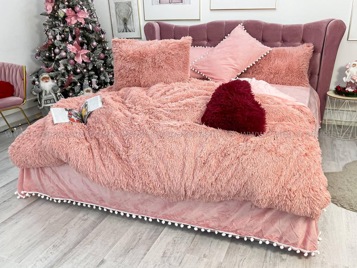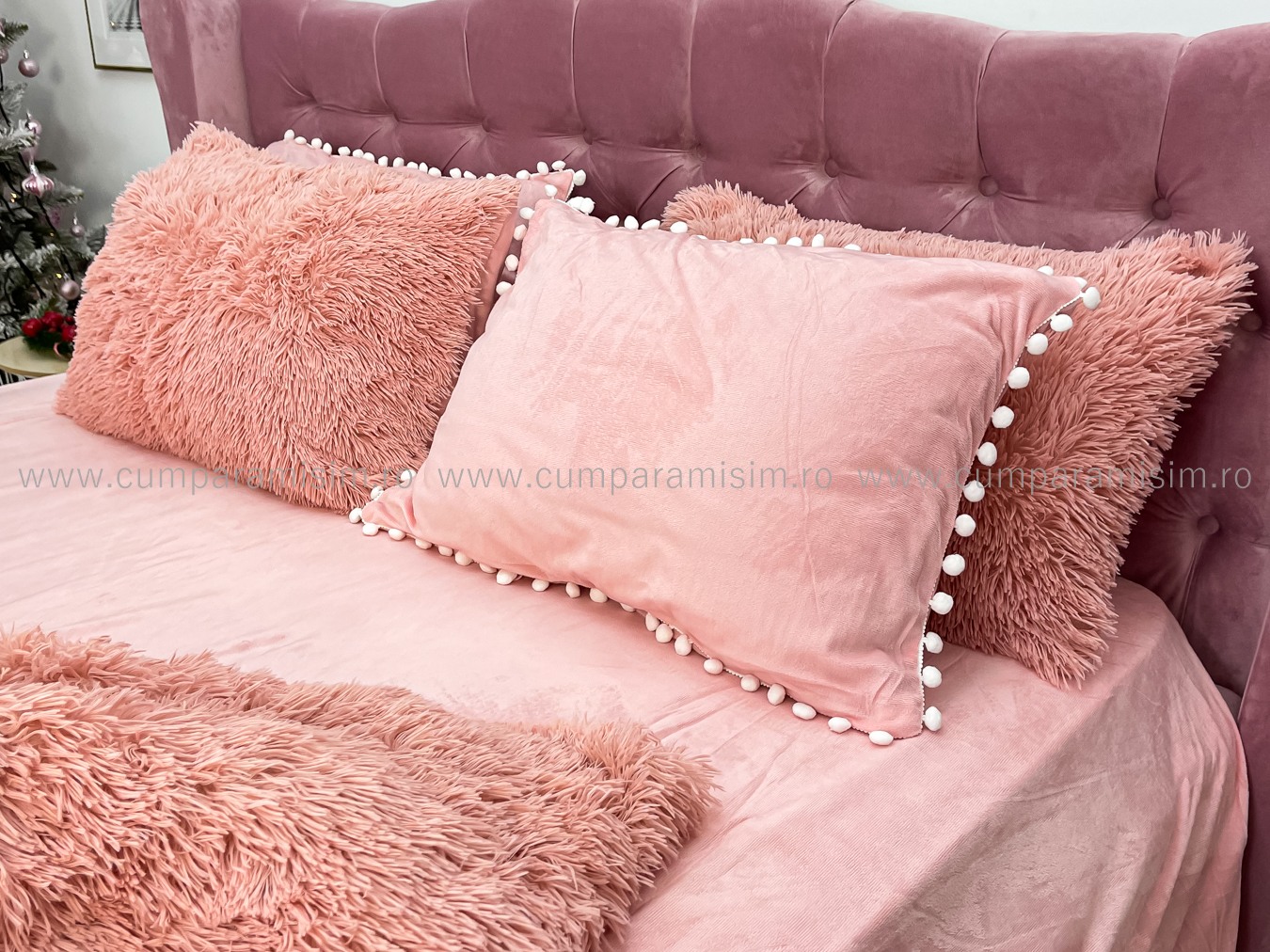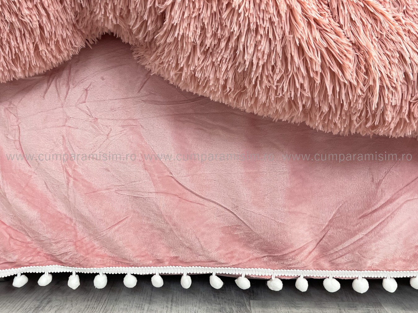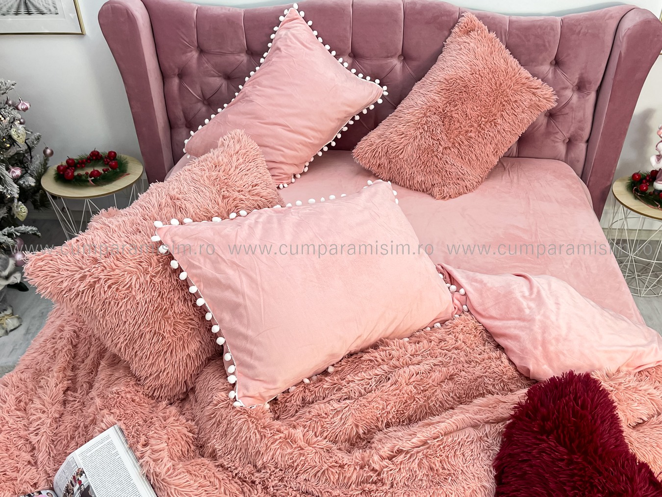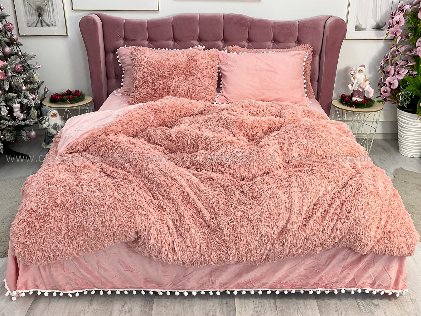 Lenjerie pat super pufoasa COCOLINO Fluffy cu ciucuri, 6 piese, ROZ