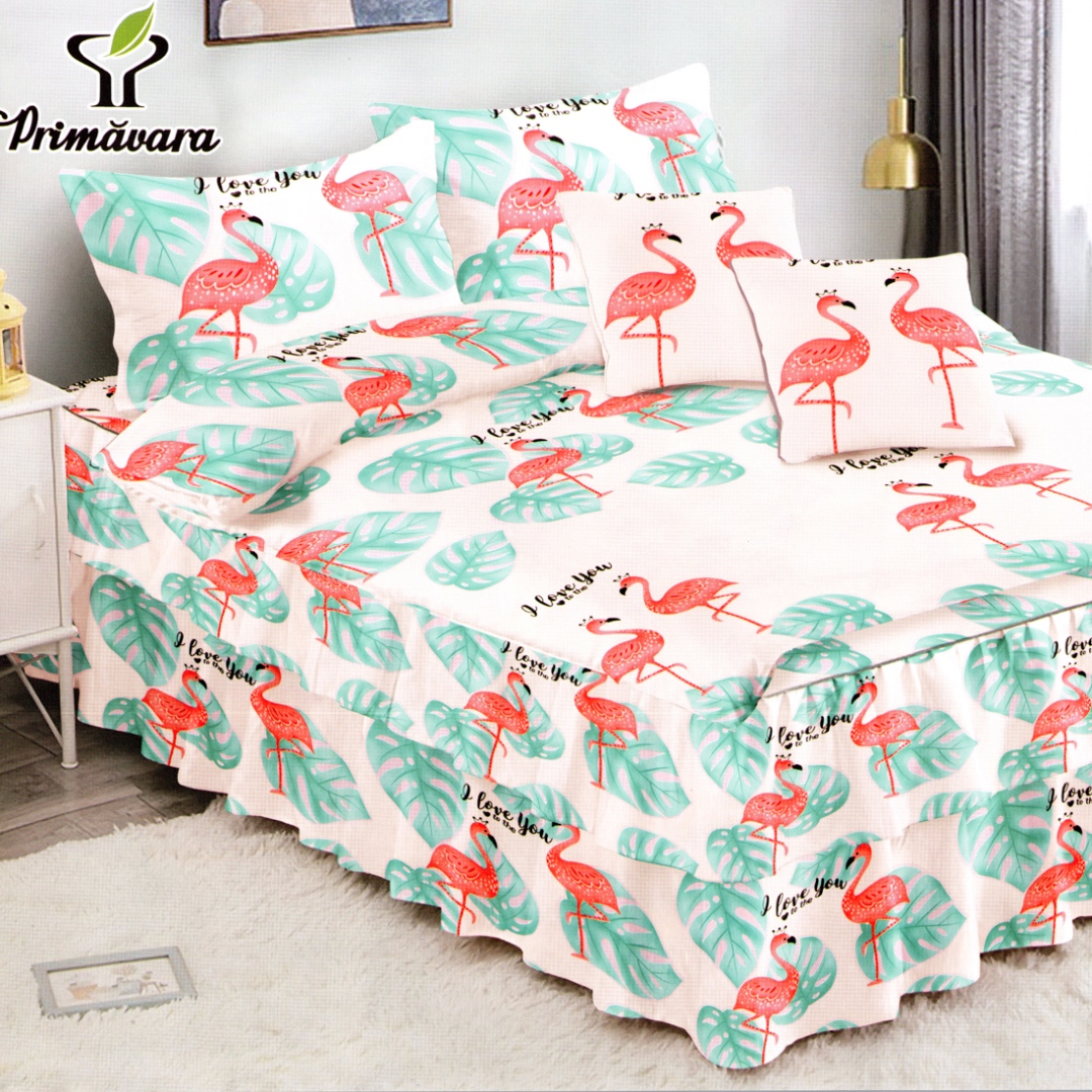 (OFERTA TRIO) Lenjerie Premium Pat Dublu FINET, 6 Piese – Volanase Sofisticate, Fixare Perfecta cu Elastic, Alb, Bleu, Flamingo, Frunze