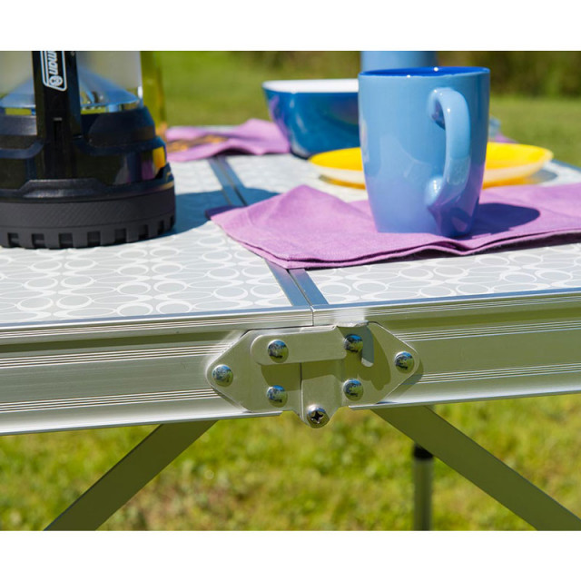Masa Coleman Pack-Away 4 - 205584 Masa ideala pentru vacantele cu familia. Potrivita pentru patru persoane poate fi stransa foarte convenabil cu bancile in interior. Bancile sunt confortabile gratie pernelor captusite care se pot scoate pentru a fi spalate. Caracteristici: - Masa pentru 4 persoane cu 2 banci; - Pernele bancilor se pot scoate; - Sistem sigur de inchidere; - Rama: Aluminiu; - Material: Poliester 600D; - Dimensiuni masa W x D x H: Intinsa = 90 x 57 x 70 cm / Stransa = 90 x 30 x 9 cm; - Dimensiuni banca W x D x H: 93 x 27 x 40 cm; - Manere de transport; - Greutate: 10.5 kg; Garantie 24 luni