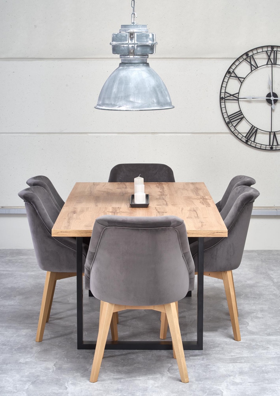 Masa extensibila Venom 160 are un aer aparte, fiind potrivita pentru interioarele moderne si clasice, se integreaza perfect in livingul dumneavoastra oferindu-i o nota de eleganta si spatiu suficient pentru mai multe persoane daca este necesar. Partea superioara este realizata din placi acoperit cu furnir de stejar si plastic ABS pe margini, pe o structura de otel inoxidabil vopsit. Forma sa simpla nu va coplesi bucataria sau sala de mese unde va sta, ci va fi apreciat atat pentru simplitate cat si pentru modul practic in care a fost contruita. Dimensiuni: Latime: 90 cm Lungime: 160-210 cm Inaltime: 74 cm Culoare: Stejar / Negru Produsul nu este montat. Instructiunile de montaj se gasesc in colet.