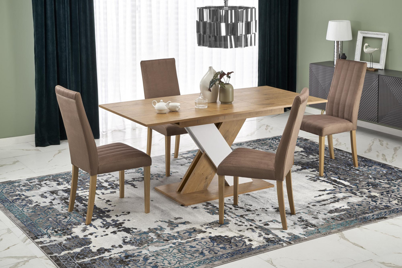 Masa extensibilă Xarelto aduce o notă rustică și autentică în locuința ta. Fie că ești un iubitor al stilului rustic sau dorești să adaugi un element deosebit în decorul tău, masa Xarelto este alegerea perfectă. Dimensiuni: Lungime: 130-175 cm Lățime: 85 cm Înălțime: 76 cm Material: placă de mobilier furniruită Culoare: stejar lancelot/alb Produsul nu este montat, este destinat pentru auto-asamblare. Instrucțiunile de montaj vin în colet.