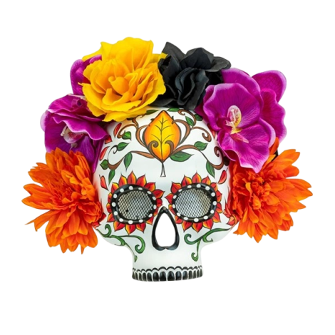 Masca Dia De Los Muertos Mujer pe 3/4 din fata, pictata cu motive specifice si coroana de flori multicolore. Produsul include sistemul de prindere cu panglici.Contraindicat copiilor mai mici de 3 ani. Jucaria/produsul poate contine piese mici care se pot inghiti sau inhala existand pericolul de sufocare sau nu este potrivita copiilor mai mici de 3 ani. Nu lasati ambalajele jucariilor/produselor la indemana copiilor. Indepartati orice ambalaj al jucariei/produsului inainte de a da jucaria/produsul copilului. Va rugam sa supravegheati copilul in timp ce se joaca/foloseste acest produs. Pastrati instructiunile si etichetele pentru referinte viitoare. Pastrati jucaria/produsul departe de foc; feriti jucaria/produsul de temperaturi ridicate si umiditate.